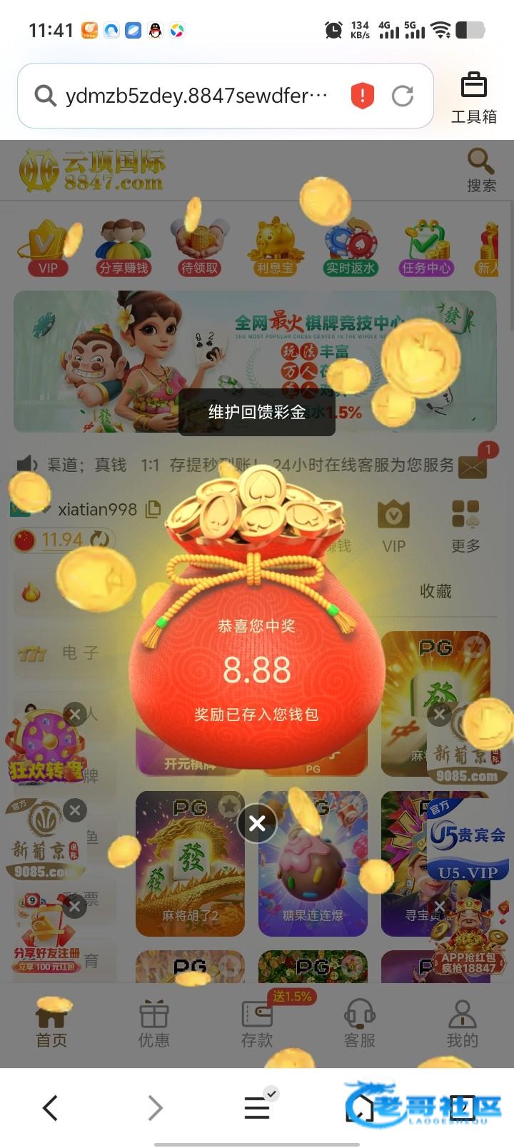 维护彩金跟天天签到前两天 历史有存款10 就可以申请 网址8847.com