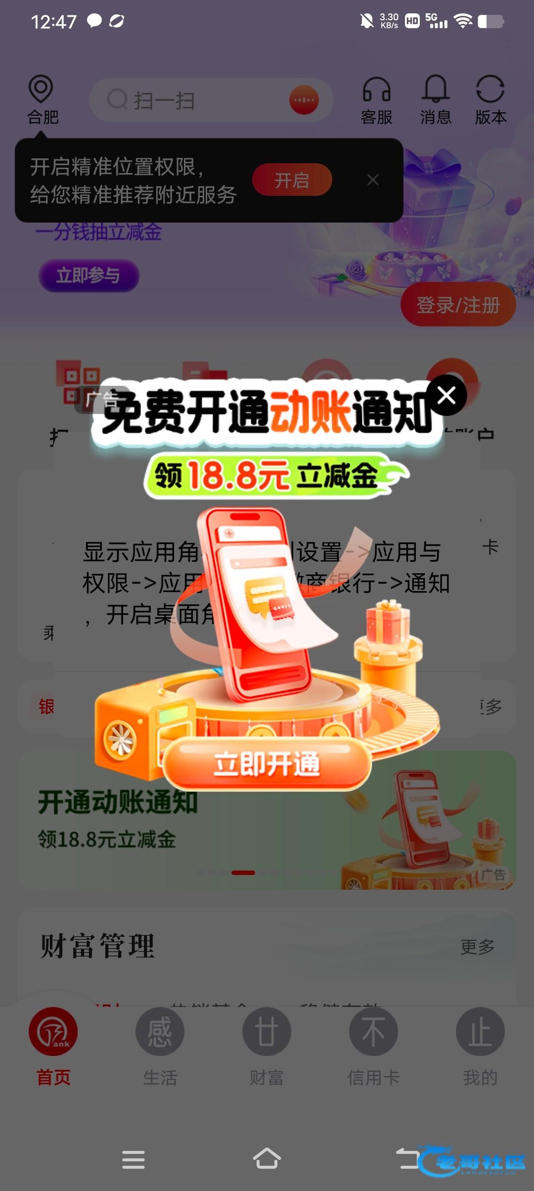 徽商银行白嫖立减金最低18.8 可以开二类卡有几个活动新用户大概三十,首页弹广告开通免费通知得18.8立减金人人都有不过领取要1到2天,你安卓机当地有网点可以没有网点的定位软件别的城市,苹果机可以定位app开。