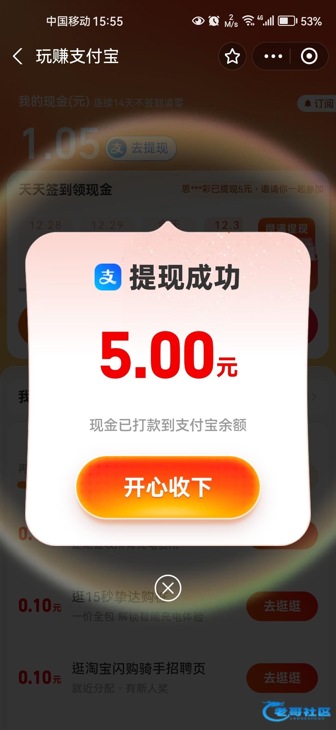 领到5块。助力有效