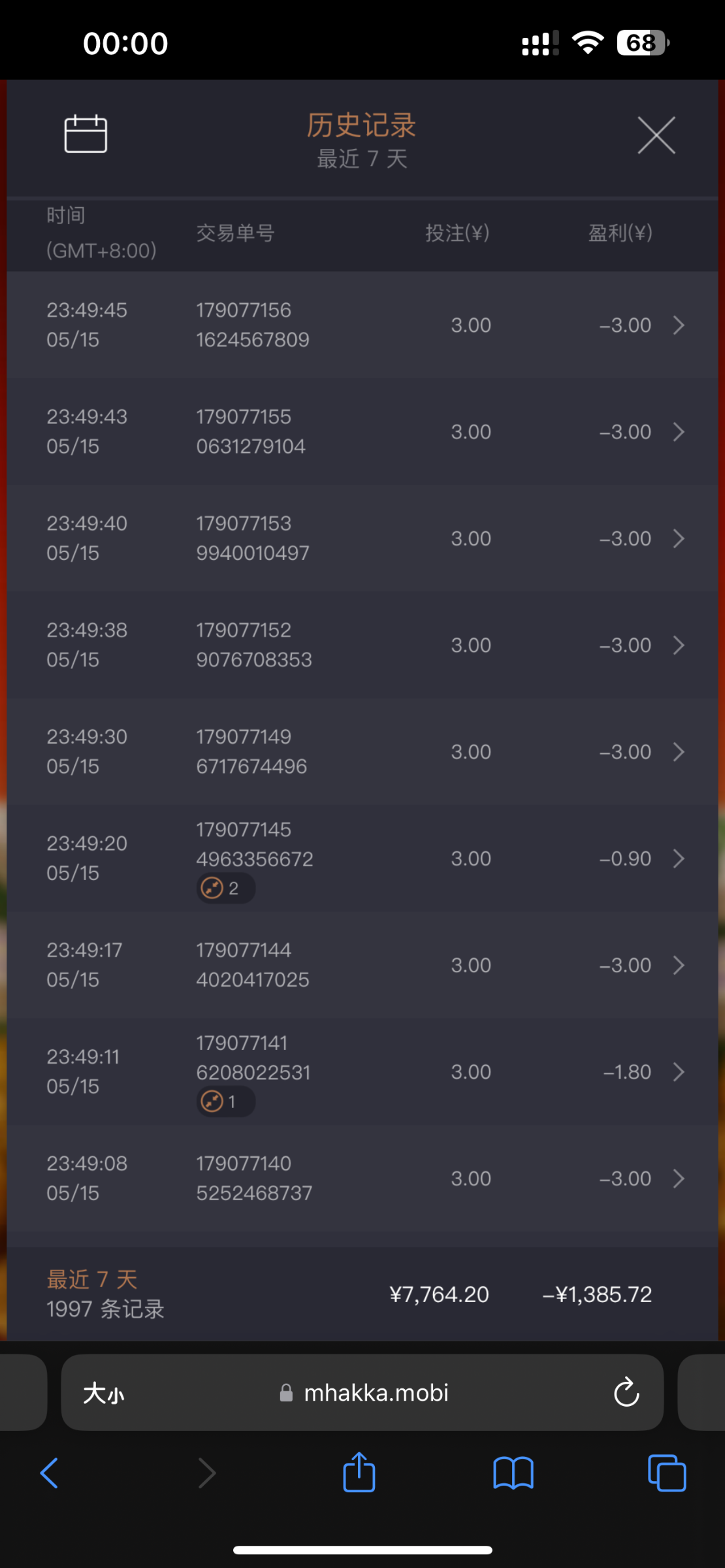 麻1免中免一共30次给了70,勉强一百倍