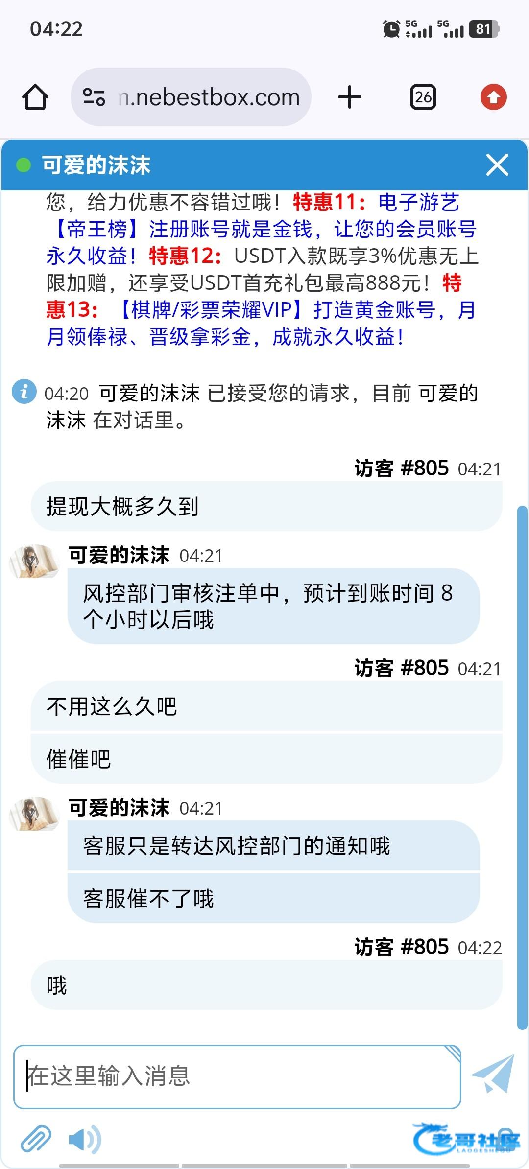充了600提4800直接审核8小时,到时间了告诉你注单异常,让你重新打,打上去了没玩完提2000又告诉你注单异常正在解决,骂狗客服后直接封号