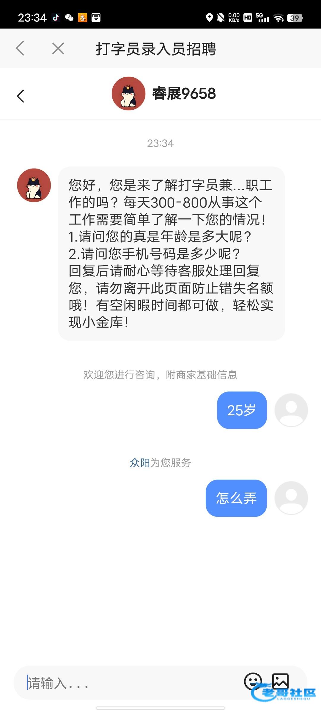 微信小程序小游戏里面看广告有很多招打字员之类的广告 点进去就能聊天 这种基本都是彩票工资车 没刷到这种广告就多换几个广告看就有