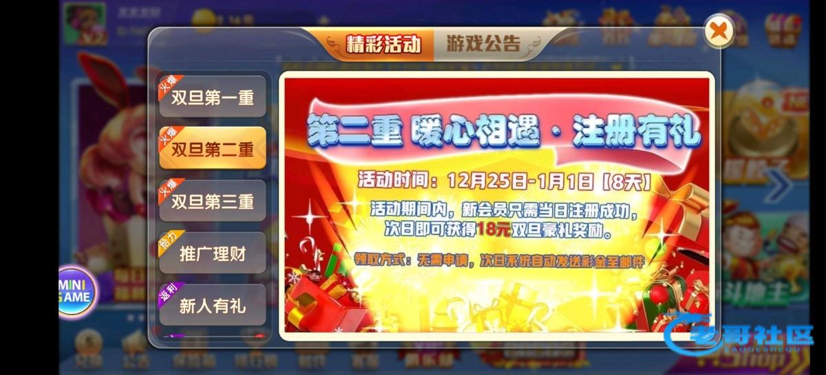 公告里面元旦第二重查看福利 活动里面没有,没看见不要骂我