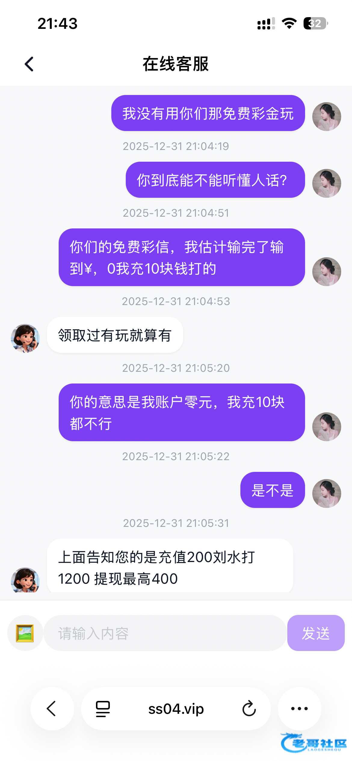 人家的意思就是你领过免费彩金就算输完了,想玩人家平台就必须冲200然后打1200水然后最高提400牛逼