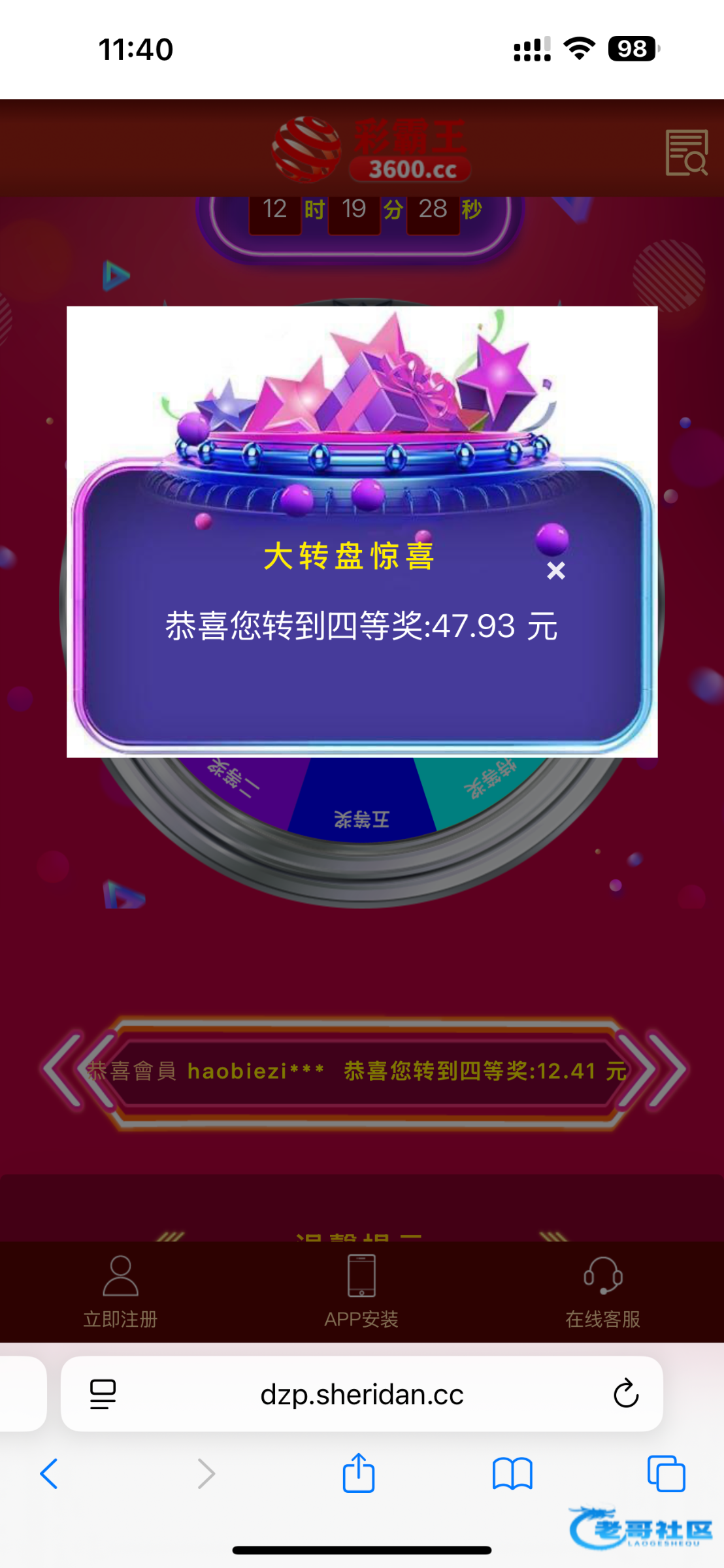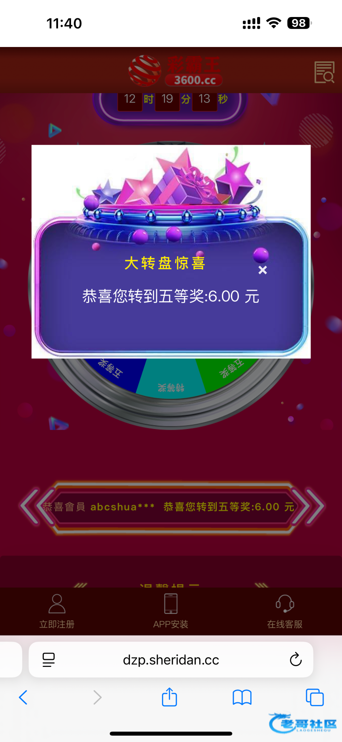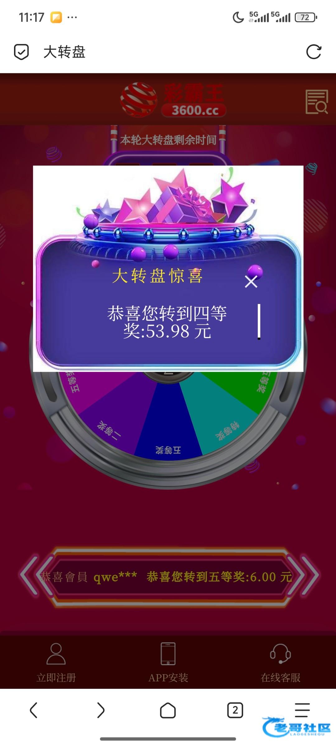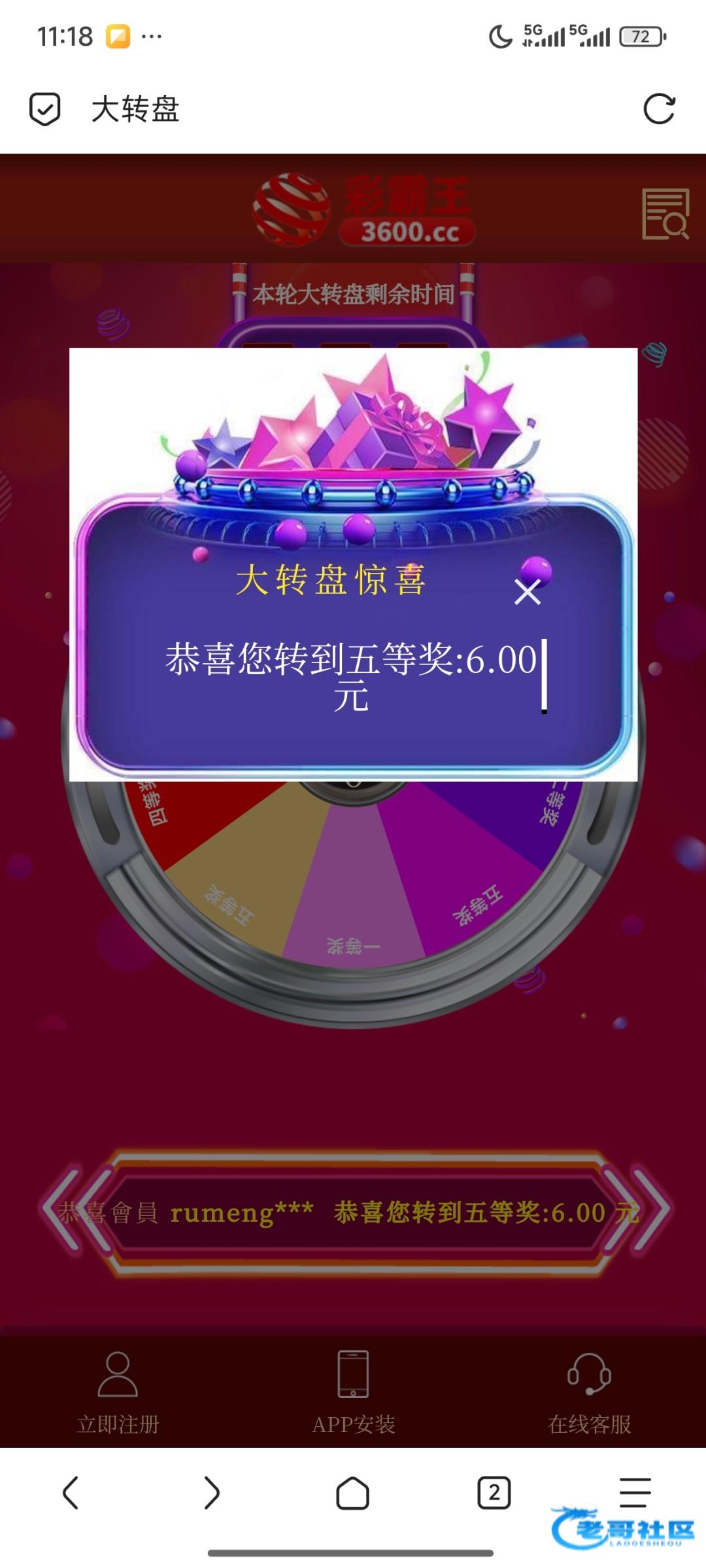 彩霸王vip2以上有抽奖,之前12.25日抽过的今天还能抽,3600.cc