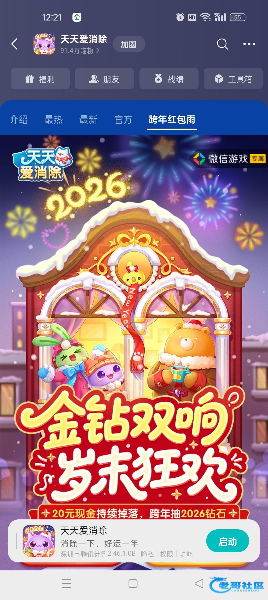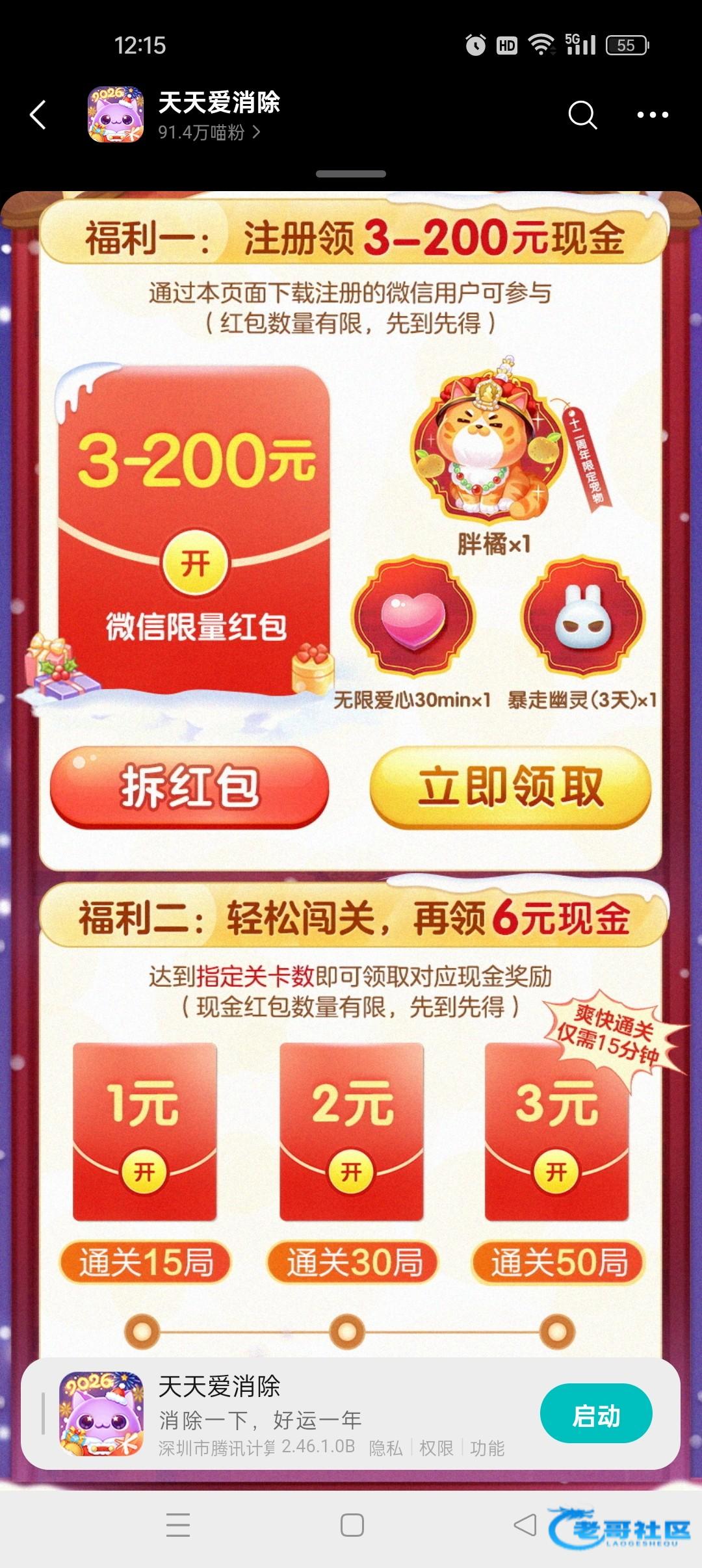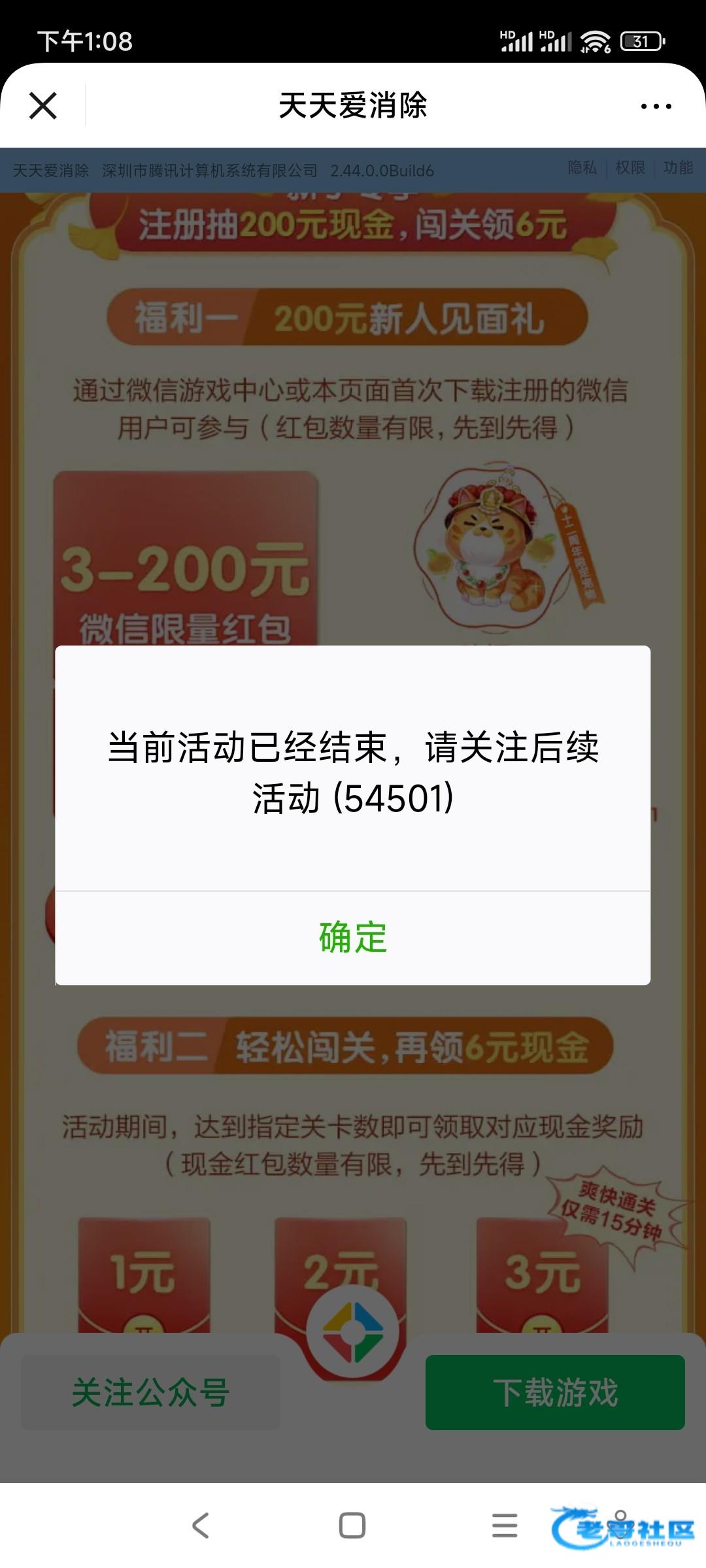 微信游戏找天天爱消除跨年红包雨页面注册下载白嫖6米 只能从跨年红包雨页面下载活动时间截止到1.5日 我生到30级一共白嫖6元,注册后有延迟过了一个多小时才能领取
