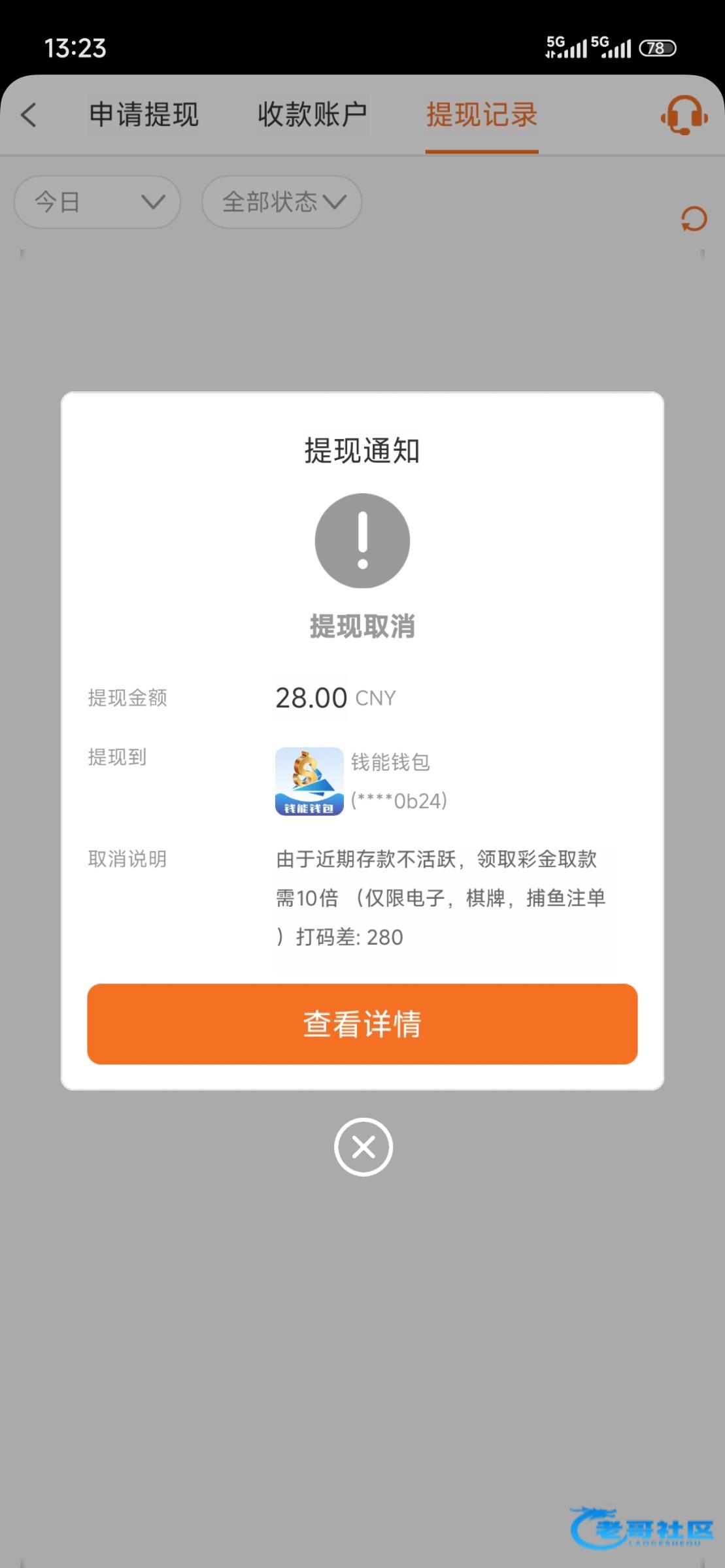 提现账号冻结