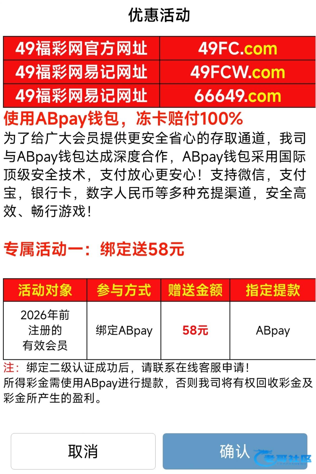 26年之前注册过福彩网有号的老用户绑定abpay钱包可以去找在线客服拿58 新用户可以碰一下新人活动 有就有没有就无视 不纠纷