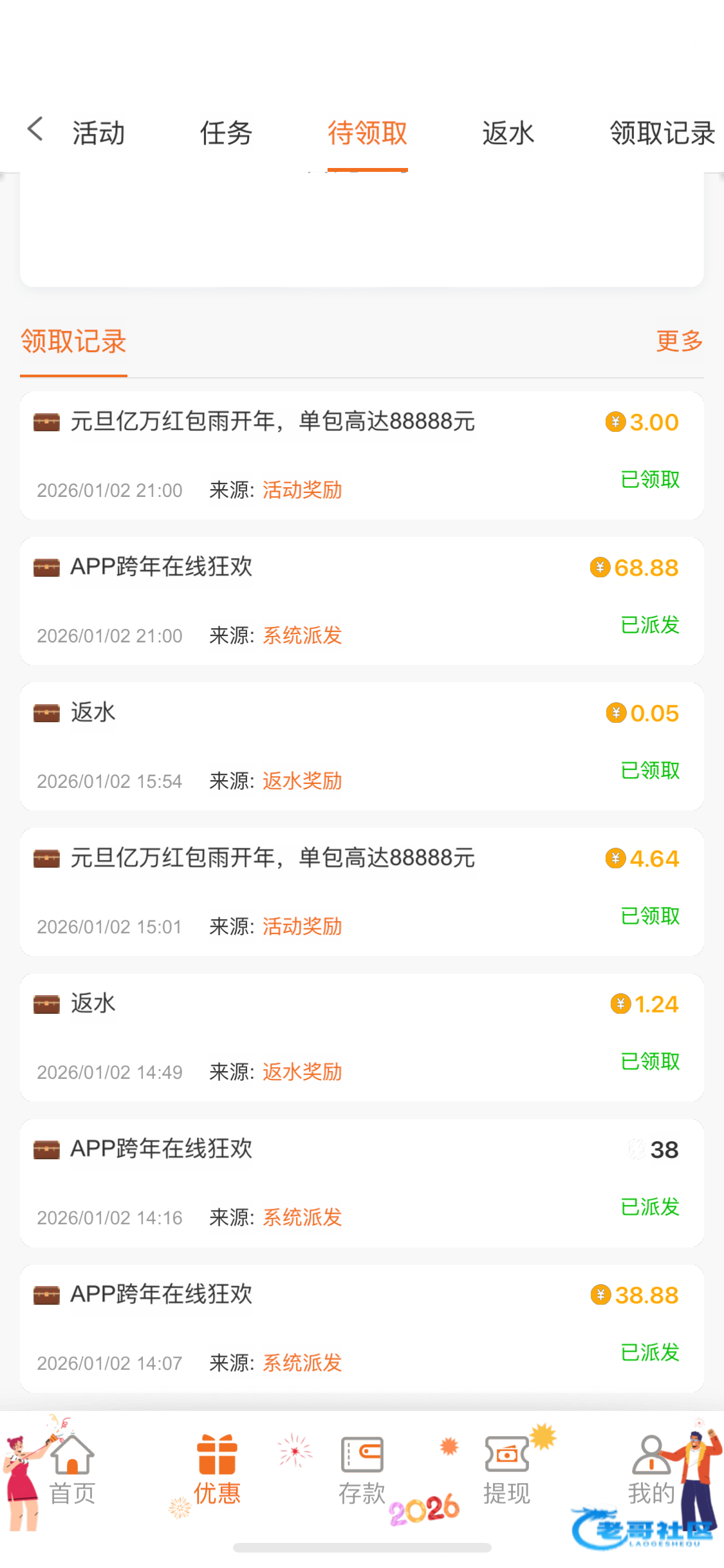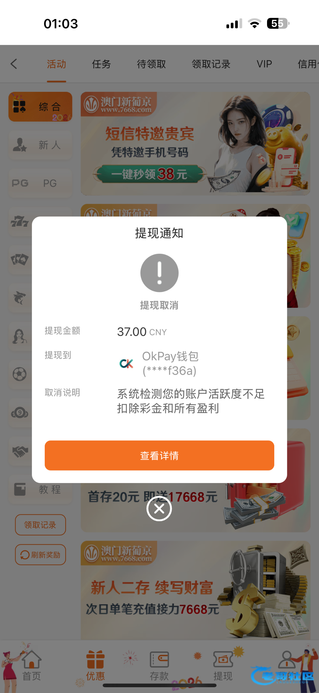 领过一次的老哥可以再上线看一下,我中午领了一次,然后提现充值领了翻倍,刚刚上线抢红包,又发现还有一个链接7668.com