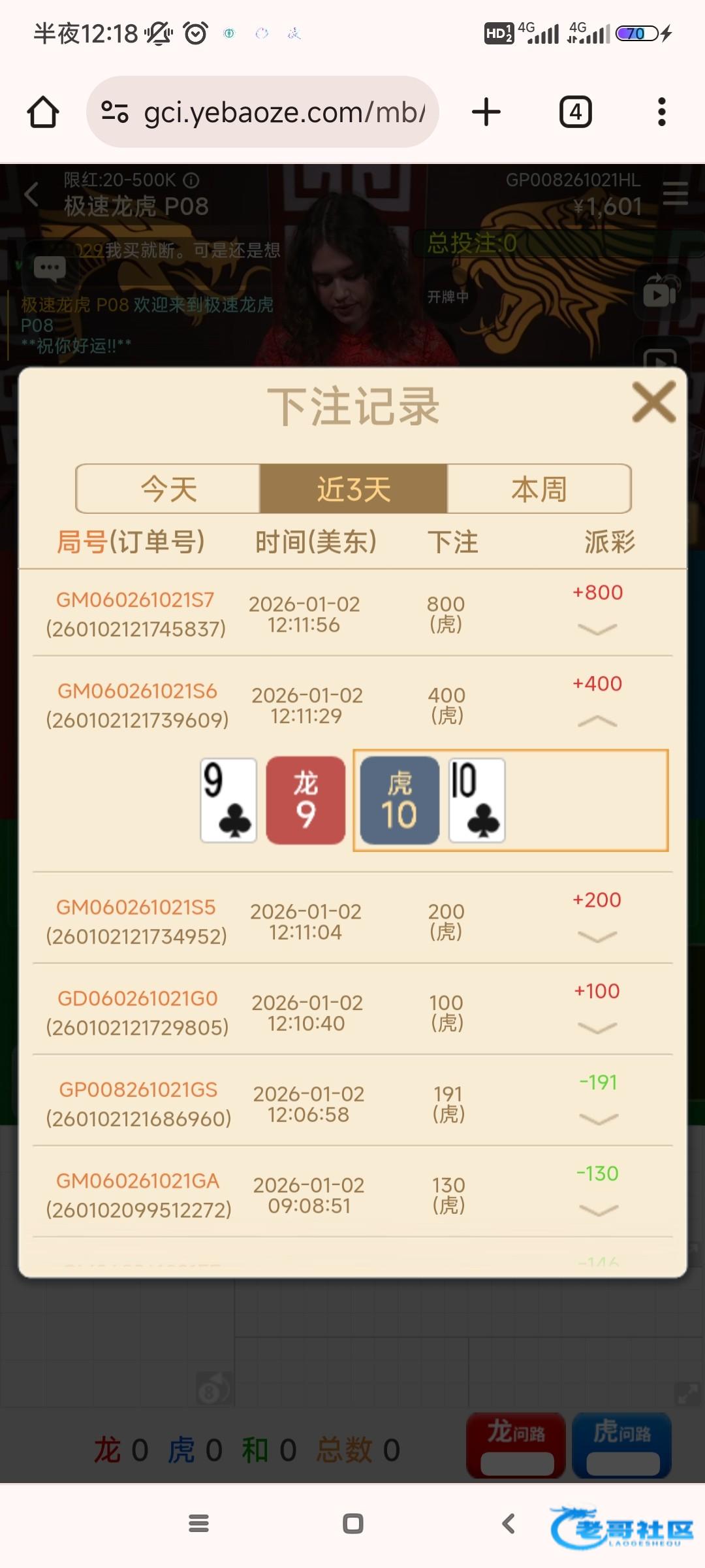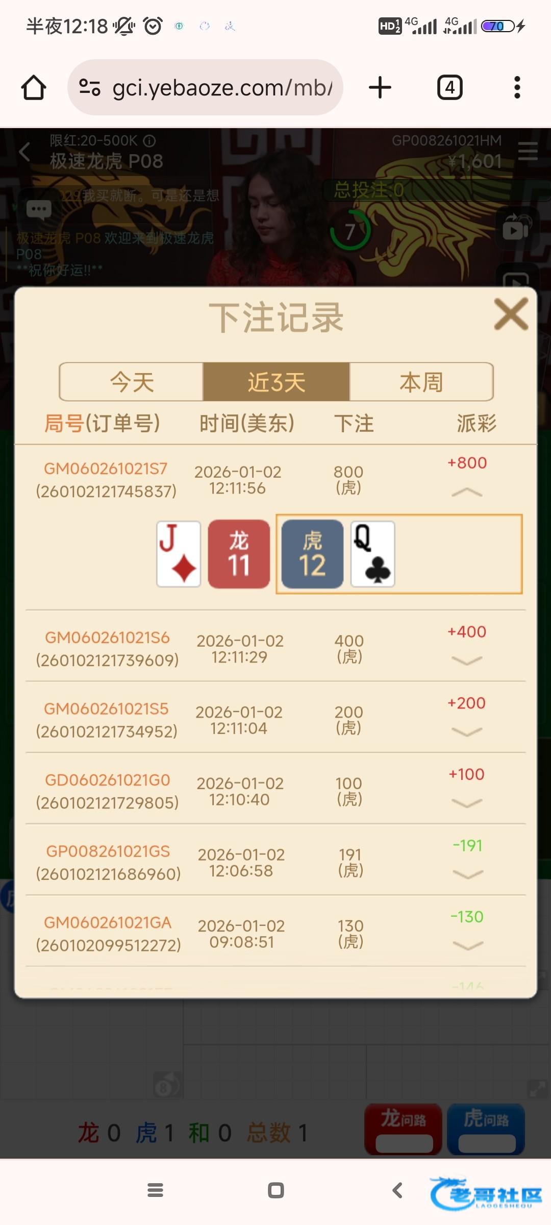 nb我是反过来,我是上分1000,倍投 20-40-80-160都输了就剩下700。直接梭哈虎。龙先开一个Q 以为已经挂壁了,结果虎开K