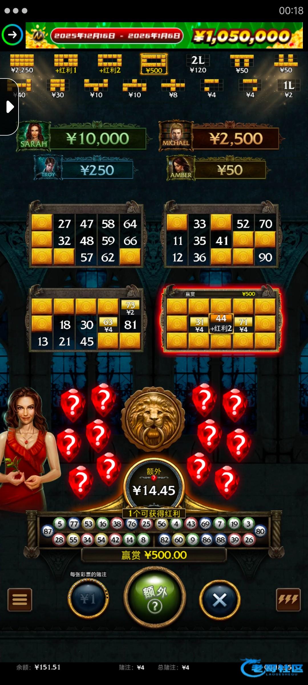 这个一块的注刚点就爆了500 如果点了个额外,是不是有可能输下去?我刚开始不知道怎么把余额收回来 问了人再知道点那个X