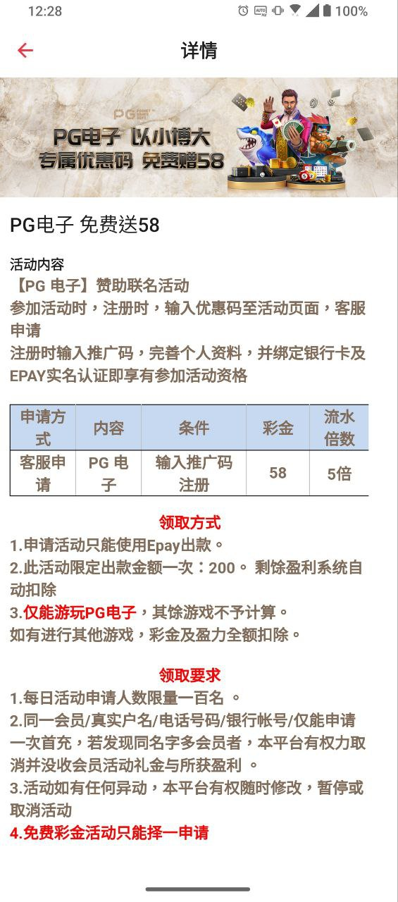 【夺彩】PG电子活动⚜️注册就送58 ⚜️⚜️免费提现200 ⚜️⚜️老哥专属推广码:960111 【未填写推广码,无法领取】✅注册时绑定信息并输入推广码,找客服申请
