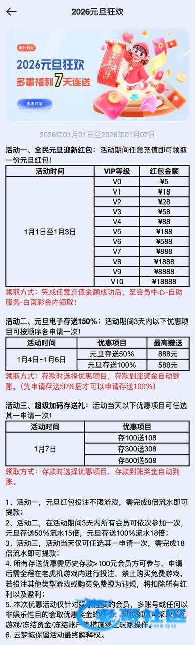 【云梦城】随机抽100份好运彩金