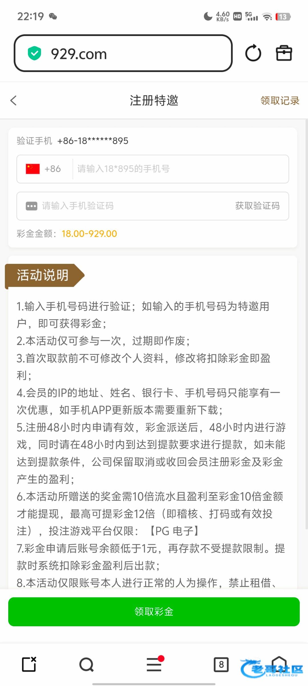链接929.com 有号的登录找客服领取彩金 没号的从短信链接进去注册 去优惠领取特邀彩金。