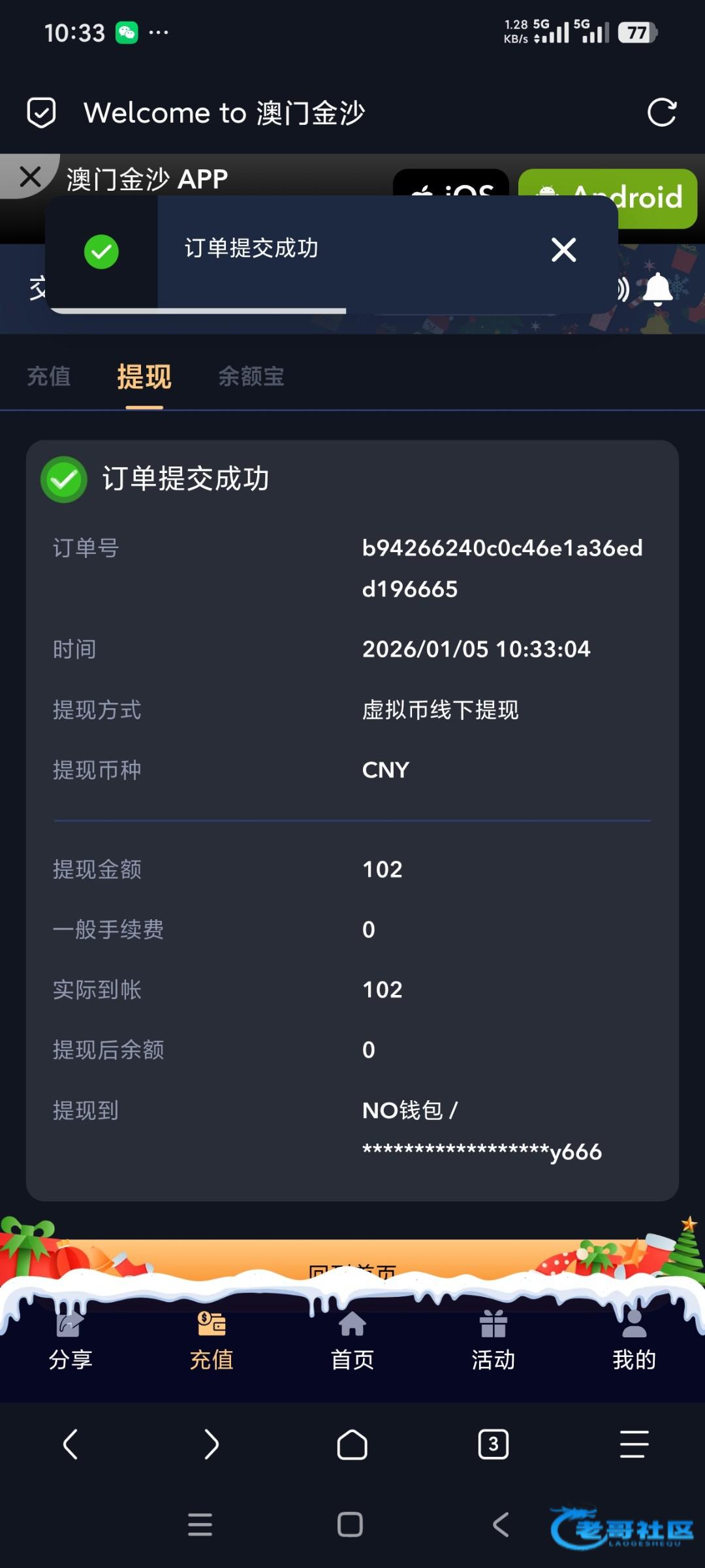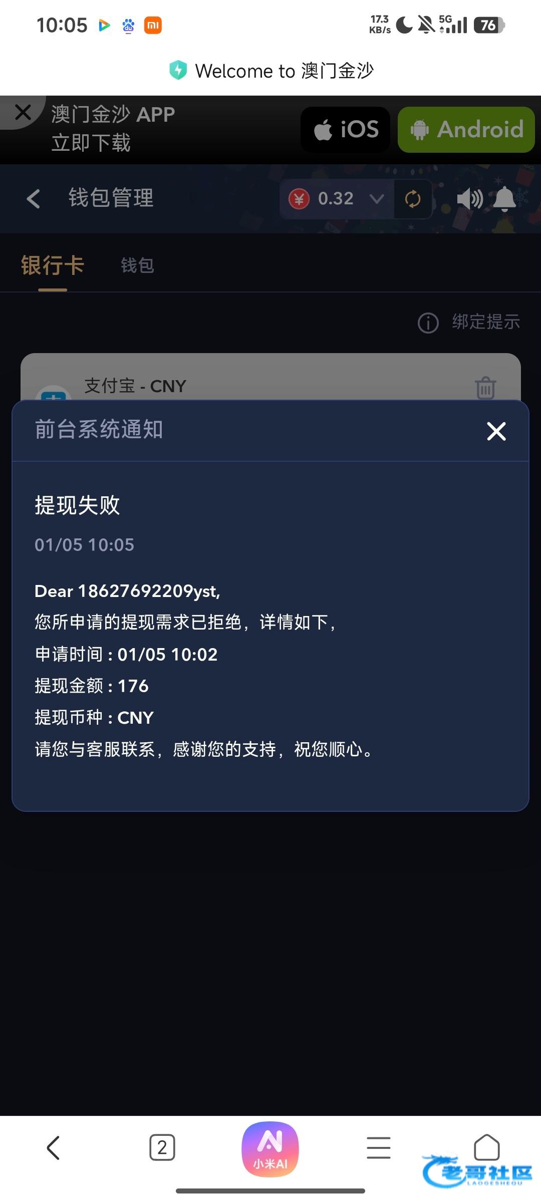 黑台,打够1500的流水提400提示权限不足,又喊我打余额5倍。