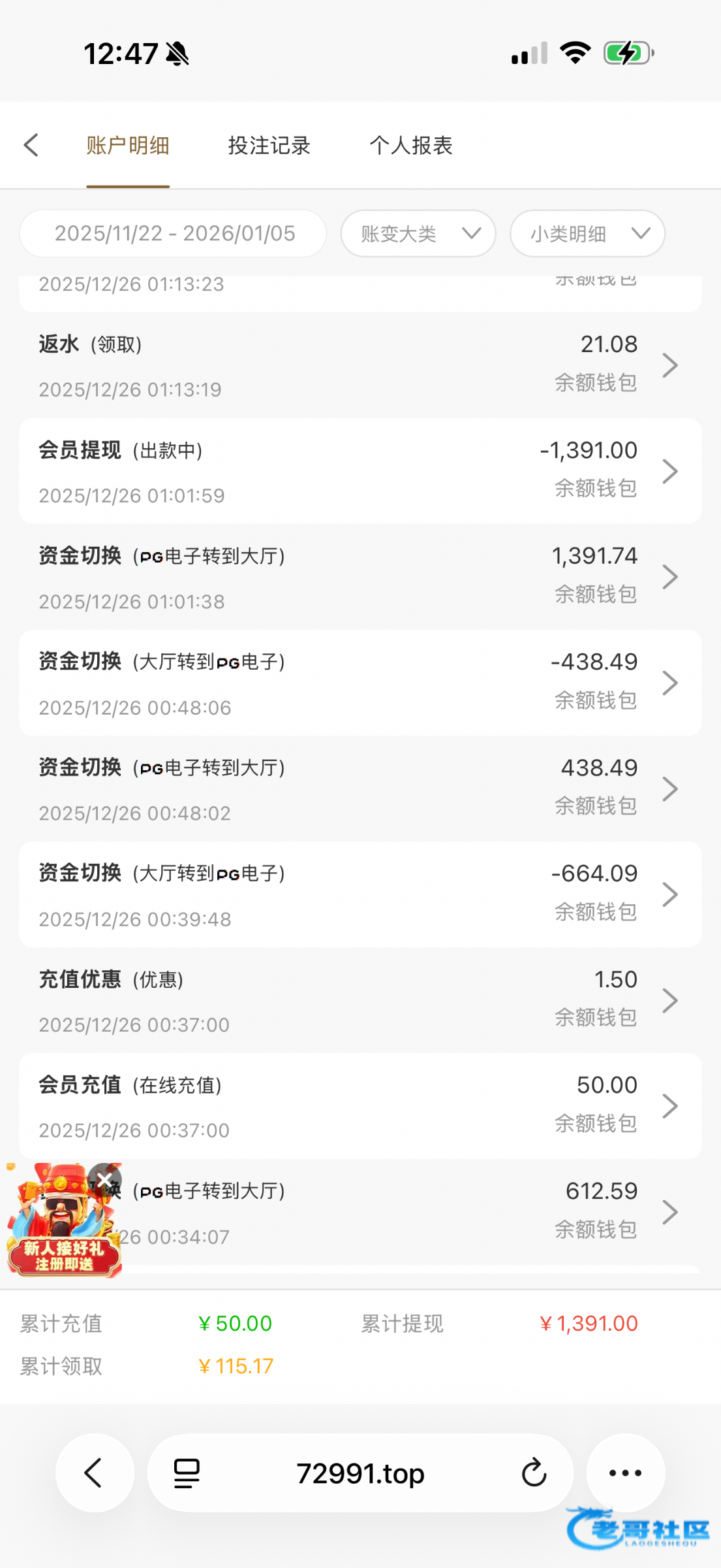 狗庄死 ▶ 老哥&yyDS 冲了五十 提款封号 21天前