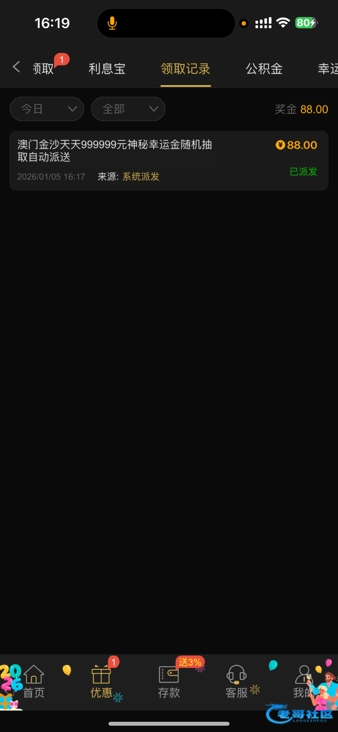 没有神秘彩金,只有超级星期一彩金给了一块钱