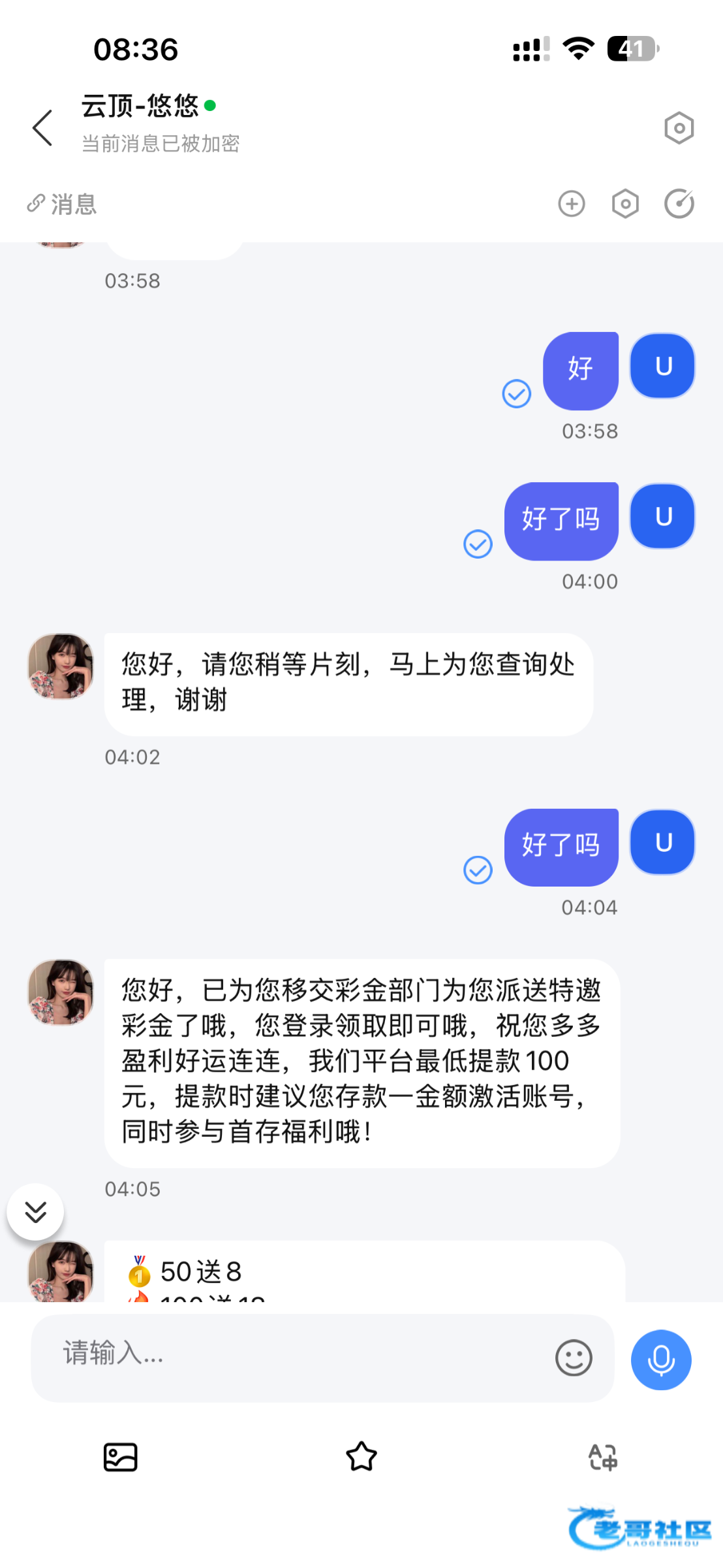 caiy8777 ▶ lzz154986 我没充 ,你收到短信截图找在线客服就行了 会让你加专属客服彩金 截图给他就好了 21天前