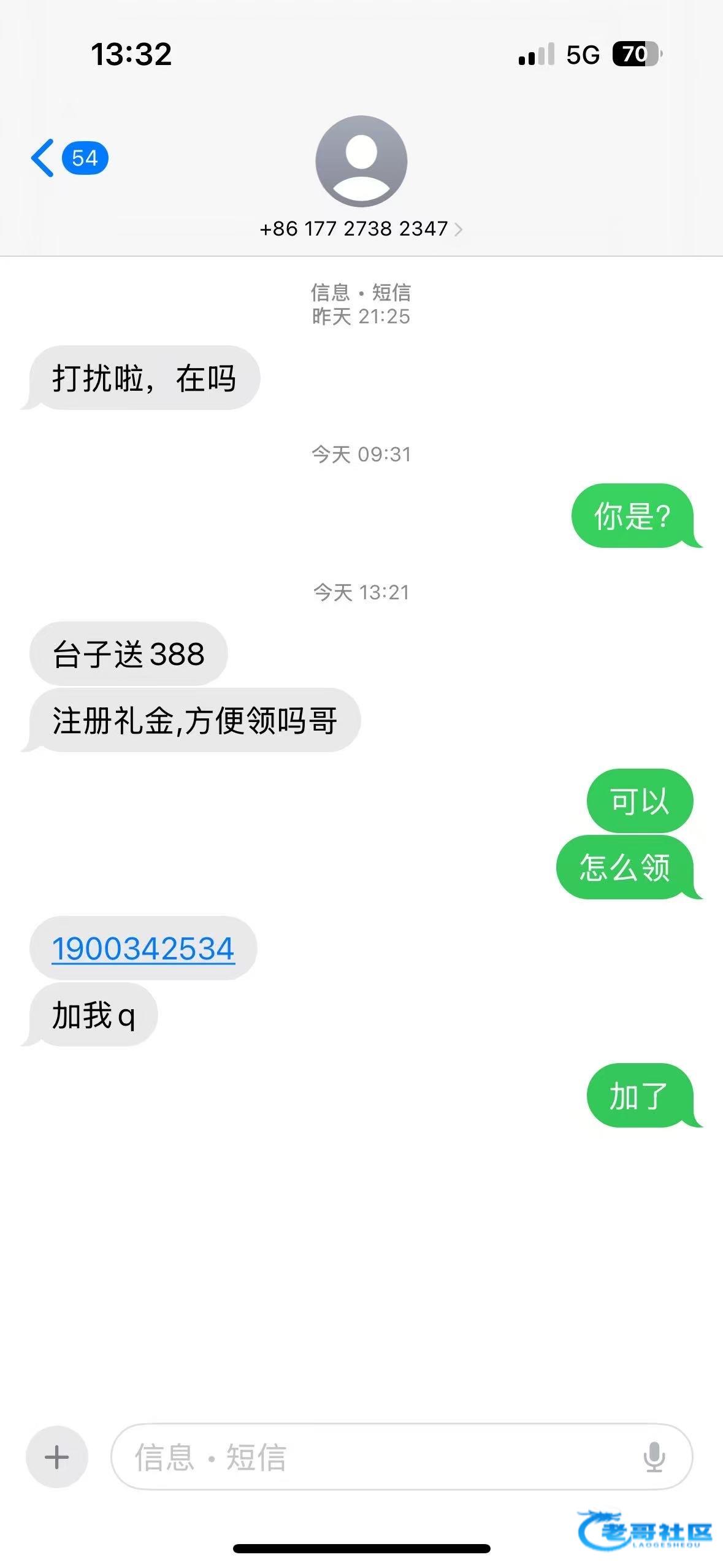 发短信来的,自己可以去p短信图,我领了188,没打出来,要高流水截图,加qq 然后让你下载海鸥,188挂壁了,打5水,我朋友碰了388出款未知。