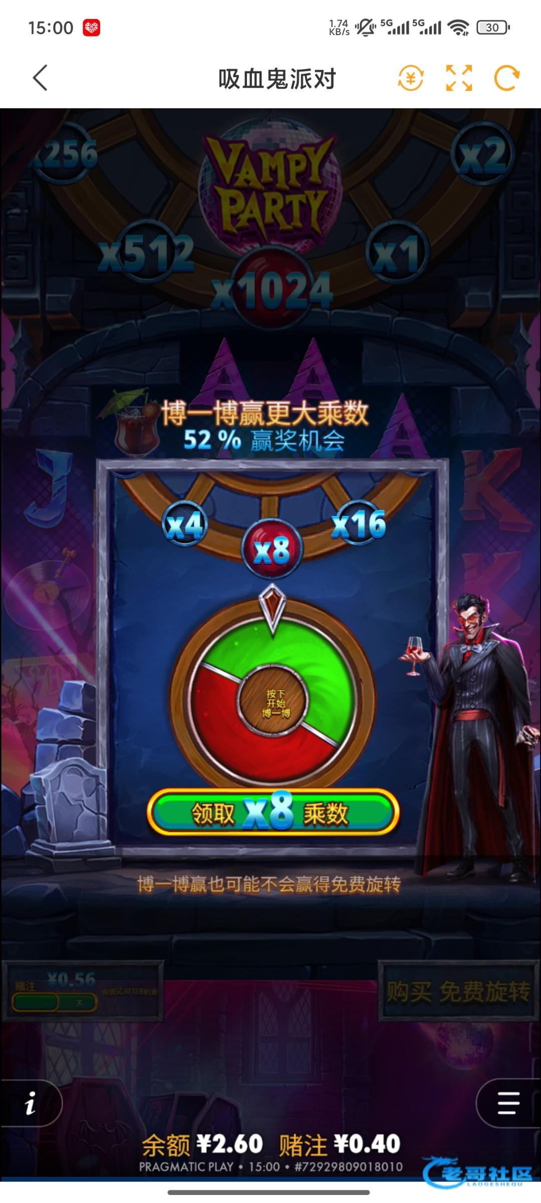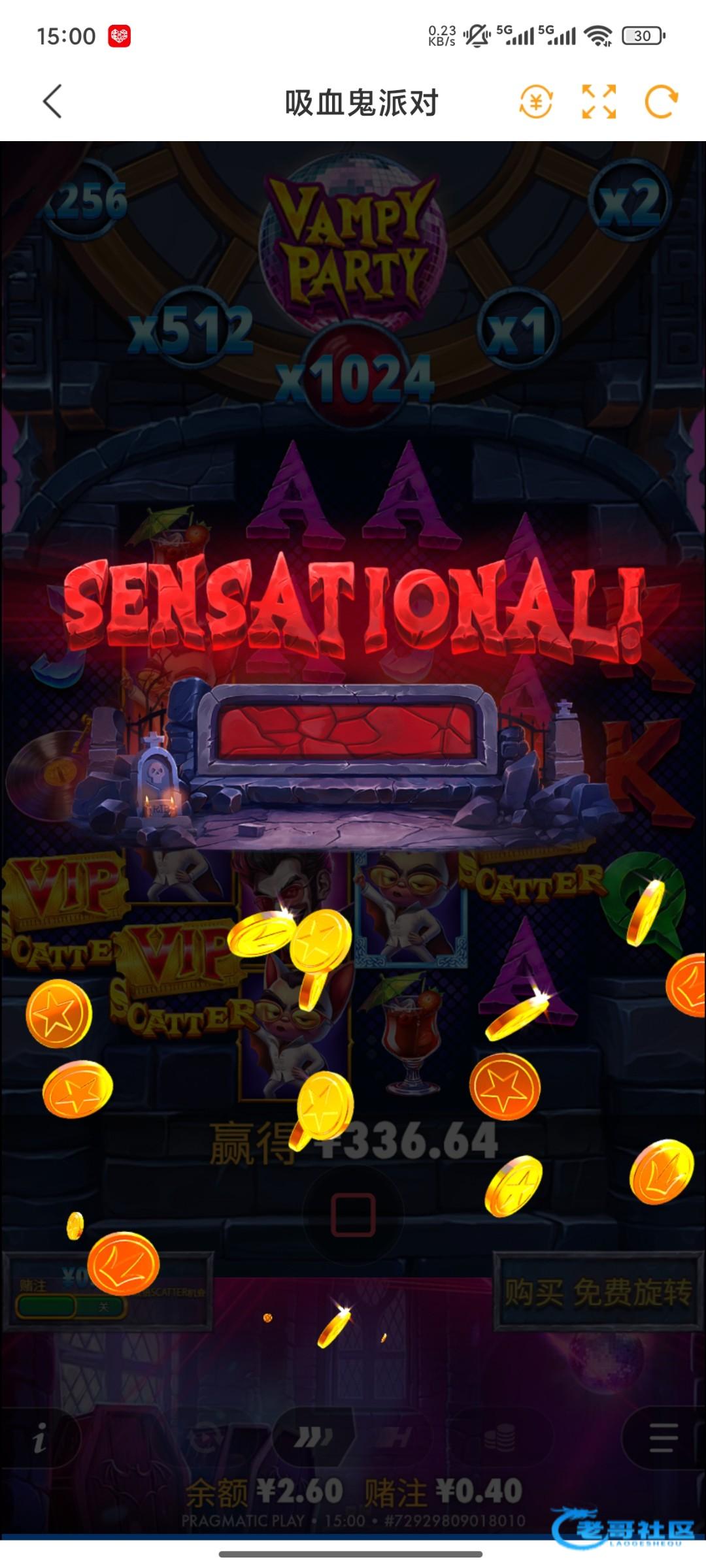 乐玩充了10块,优惠券领了20输了,充的10块进的吸血鬼,1024倍才中三百多,上次990里,也是四毛,512倍都中1300多,吸血鬼1024出了三个夺宝,居然博了一手,免费旋转没了,哎,充值还得验证手机号,都欠费一个月了,为了这300,就充40话费博一下,也许能提款呢,居然秒到,这个乐玩还是可以玩的