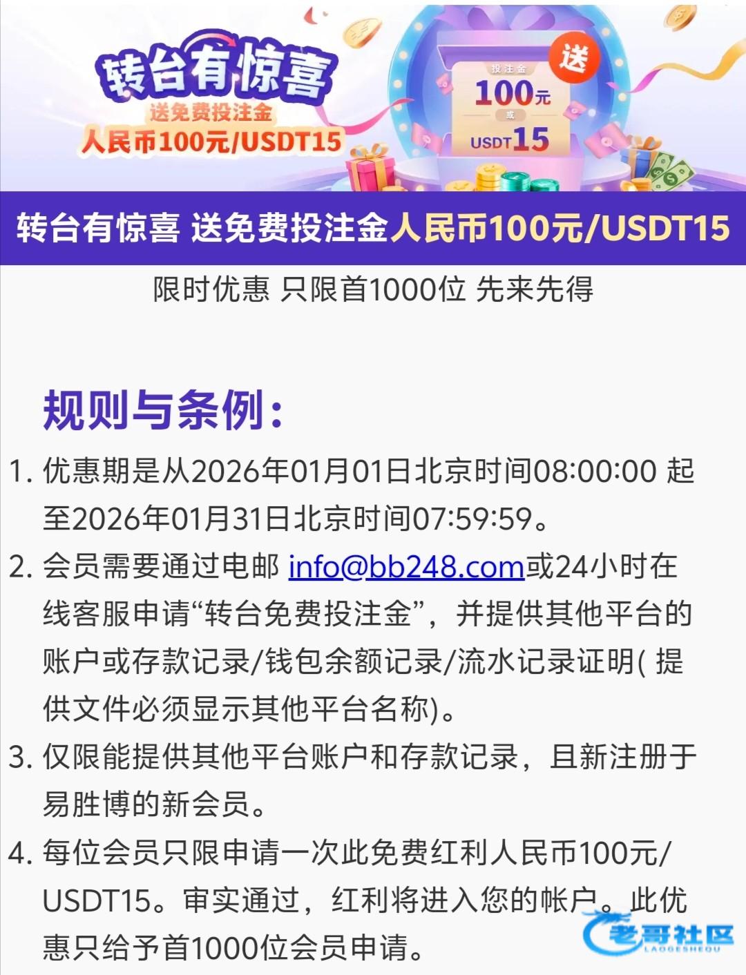 恭喜您!【转台有惊喜 送免费投注金】红利已成功发放至您的账户。使用前需完成5倍流水,请登录账户查看余额。**温馨提示:**请完成至少一次成功存款记录后,即可提现。感谢您的支持,祝您好运连连,游戏愉快~