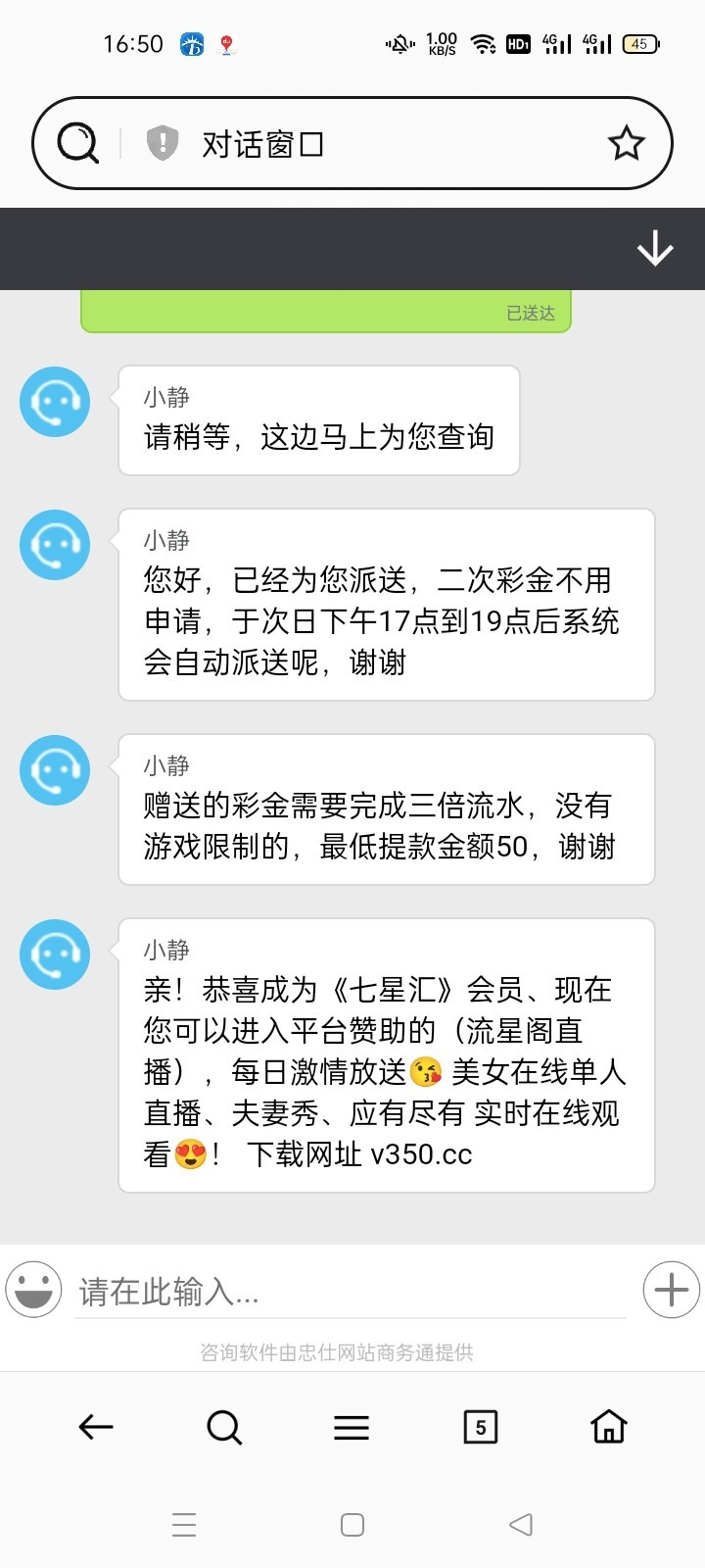 这个七星汇上次哪个老哥发过了当时注册碰瓷没成功,今天收到短信了,分三天送,第一天送38三倍流水,50起提