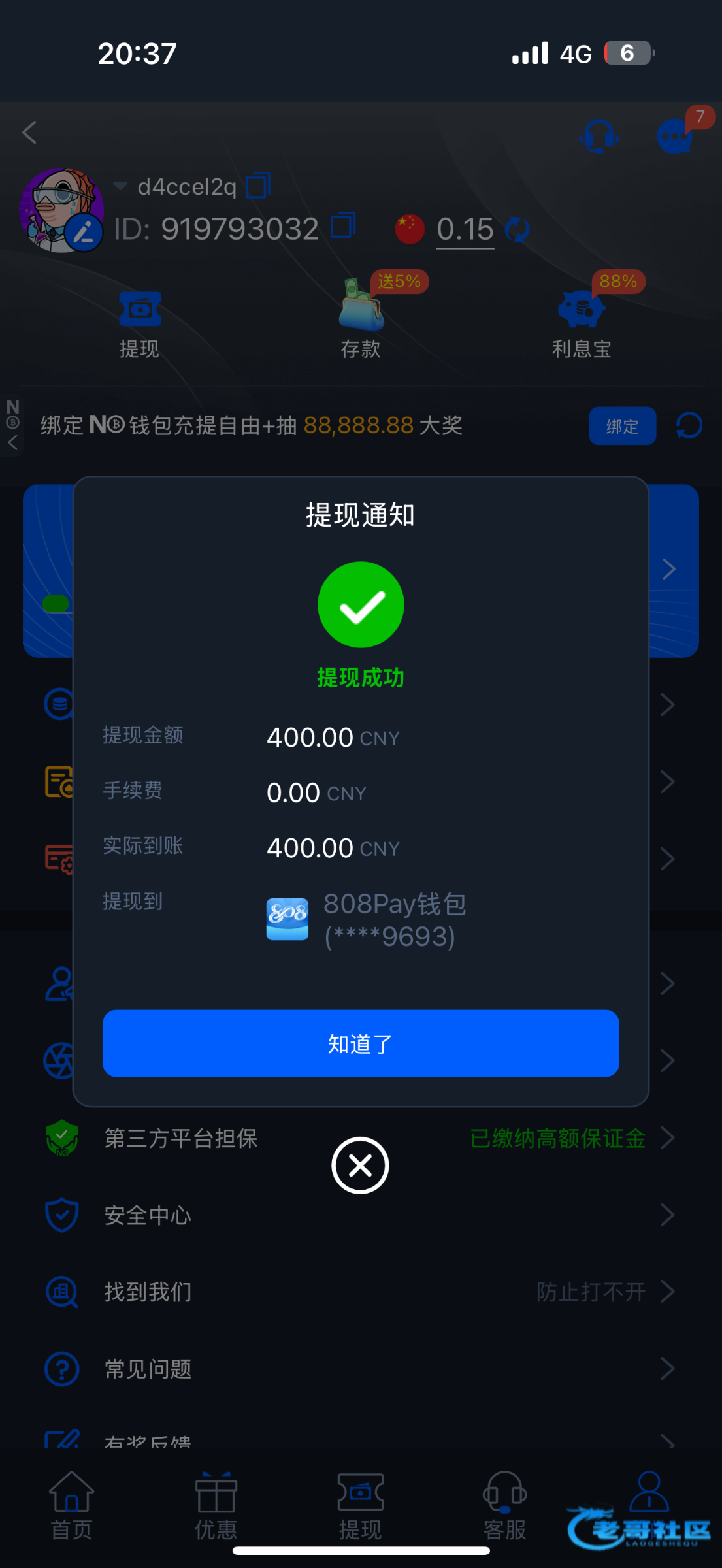 18打出400充30提现中