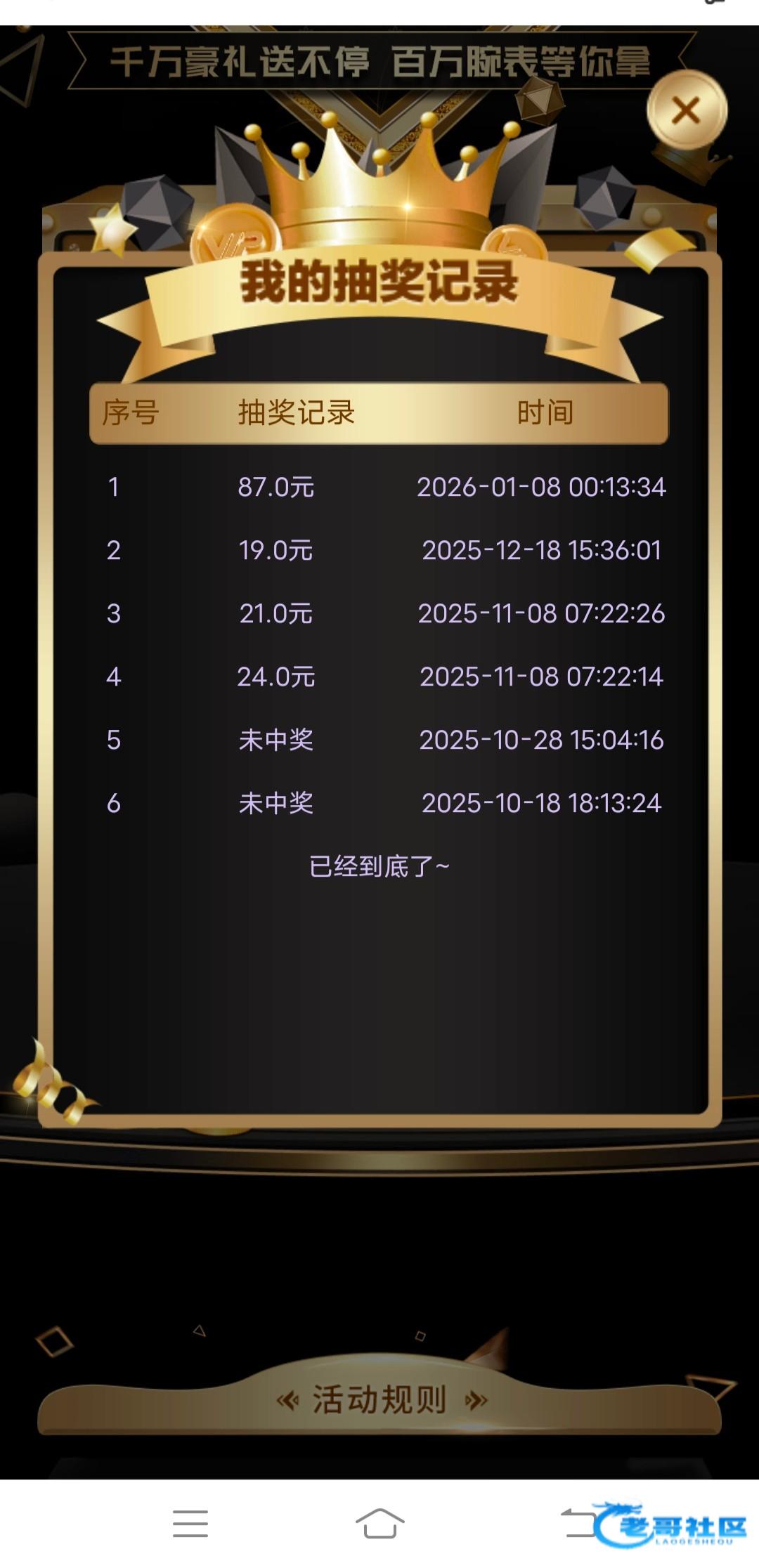 老哥们今天球友会会员日,最近有玩过的记得去抽奖,我抽到了87彩金,玩真人出了
