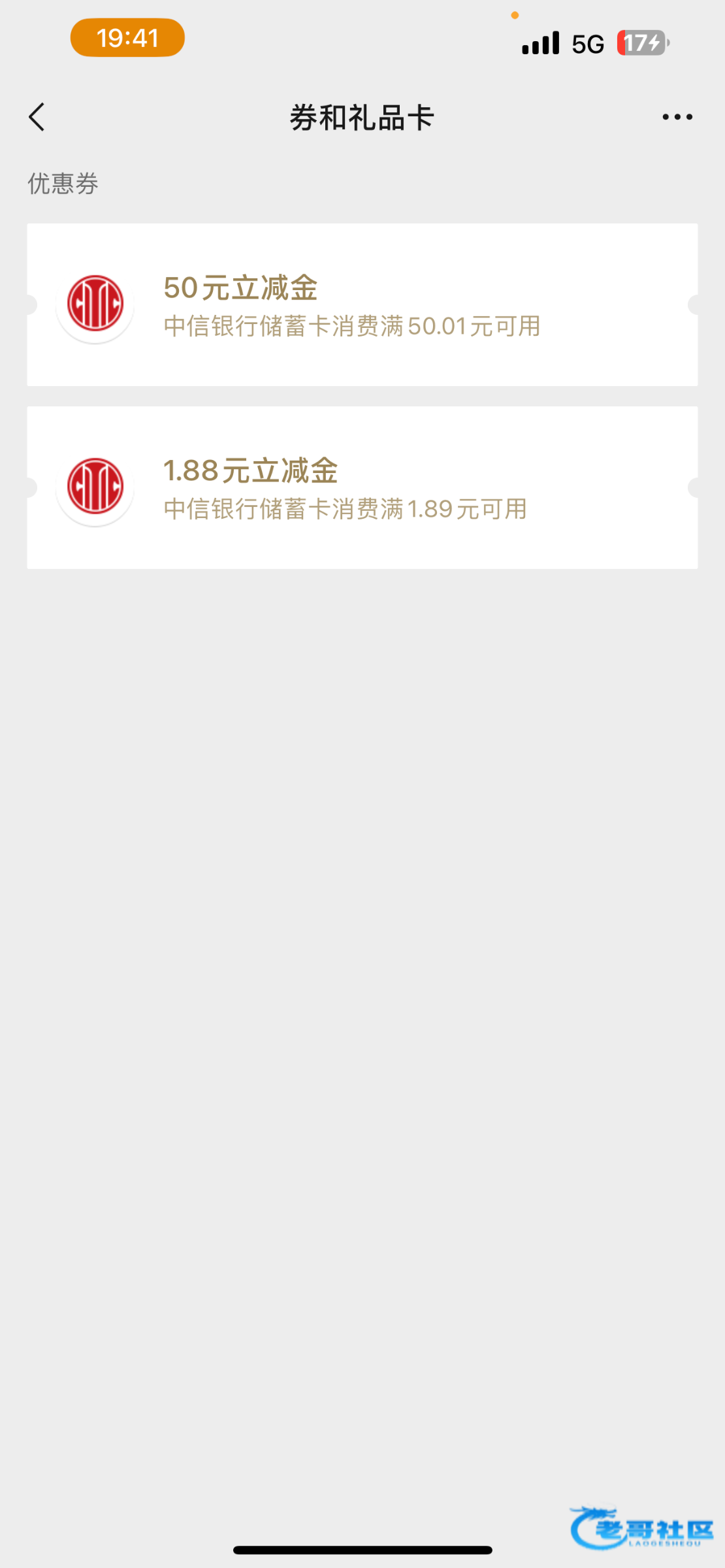 中信人人50大毛 刚开的电子都可以领,亲测刚开的一张电子卡,套出50,没玩过的可以去试试,撸到的反馈一下