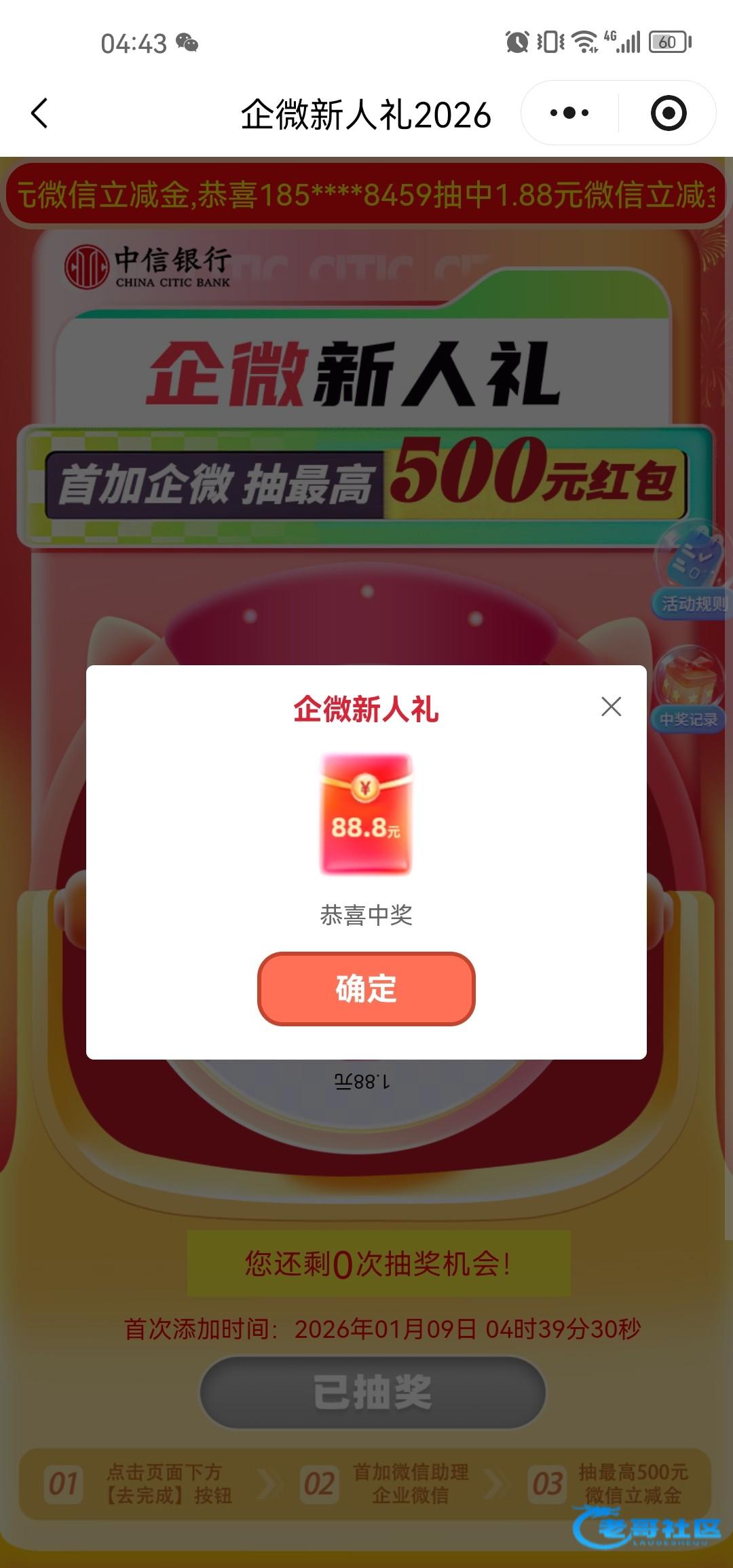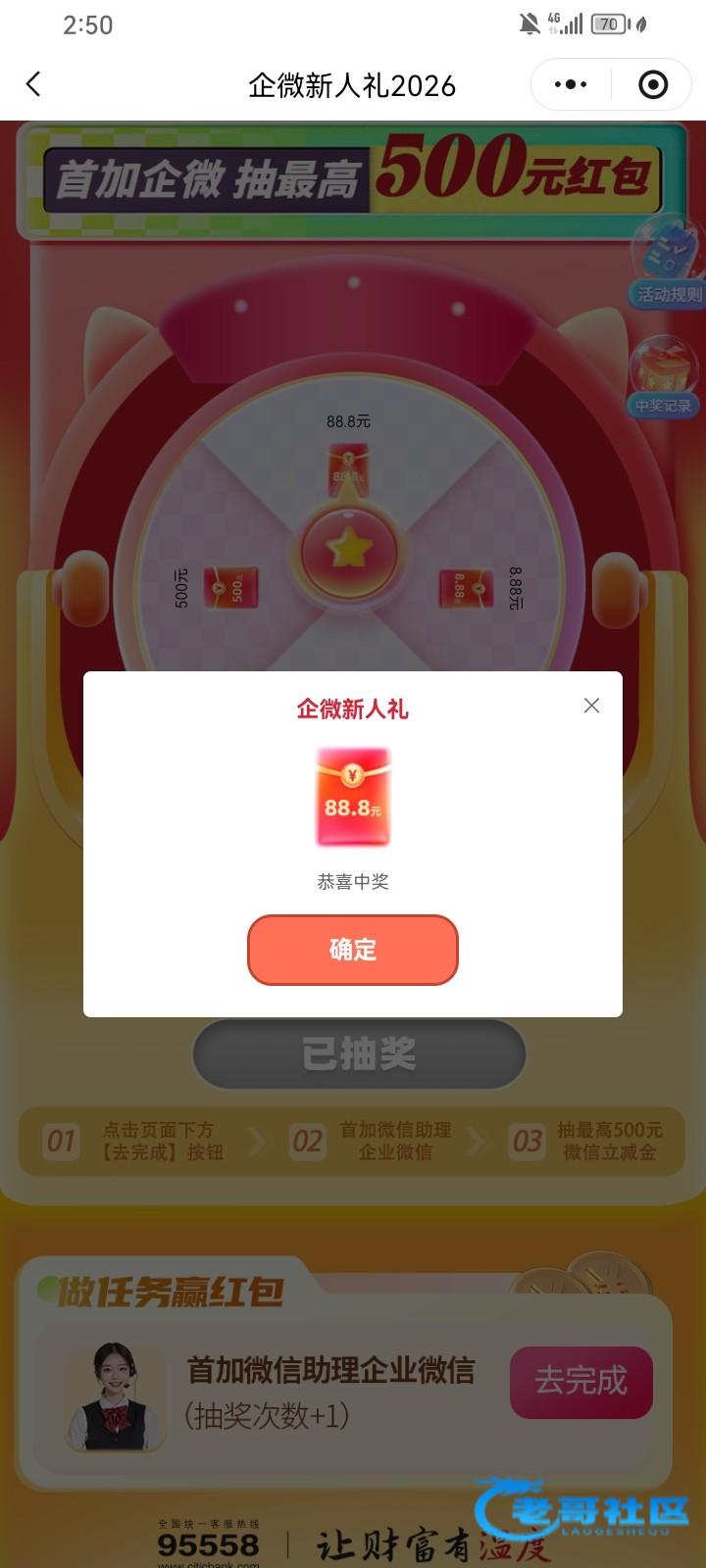 这个缤纷没领到,添加企微中了88.8
