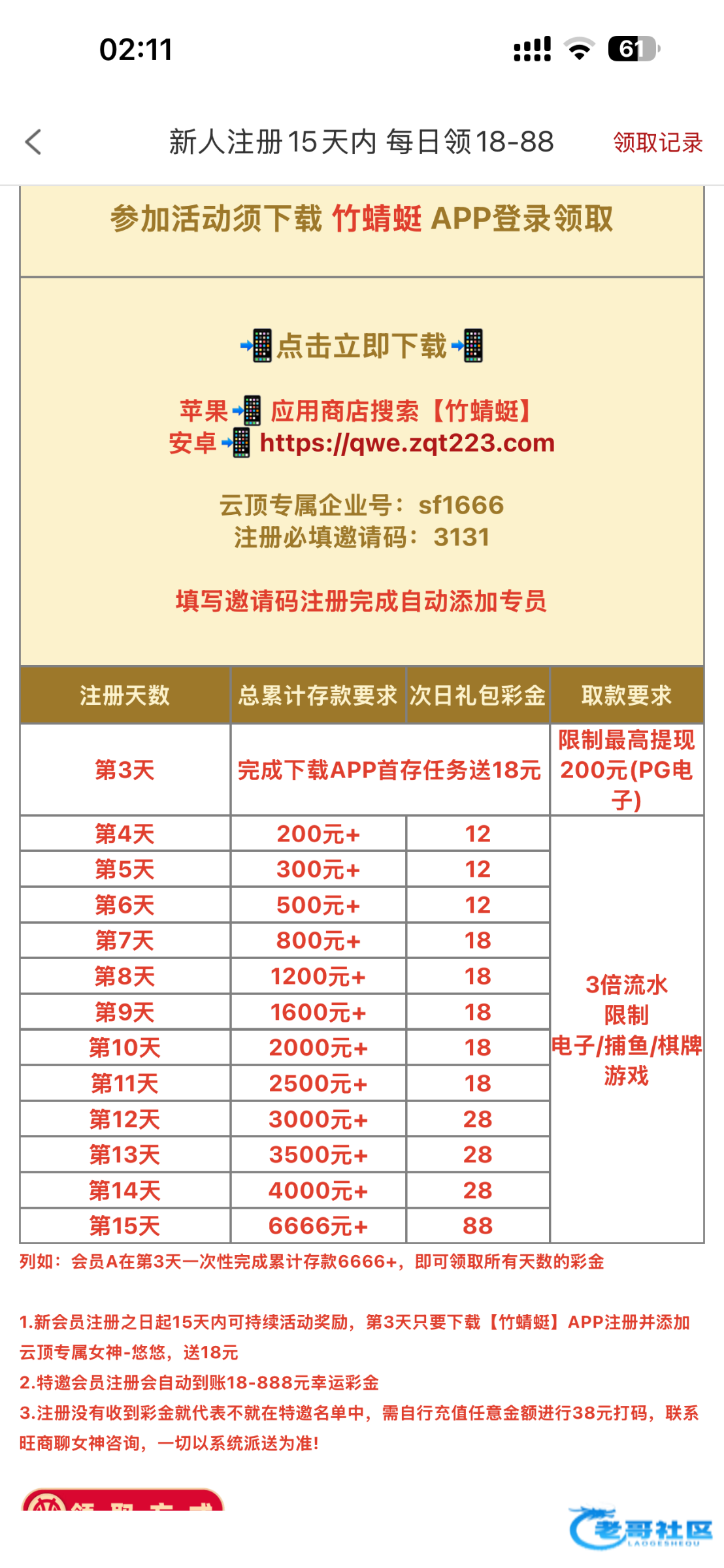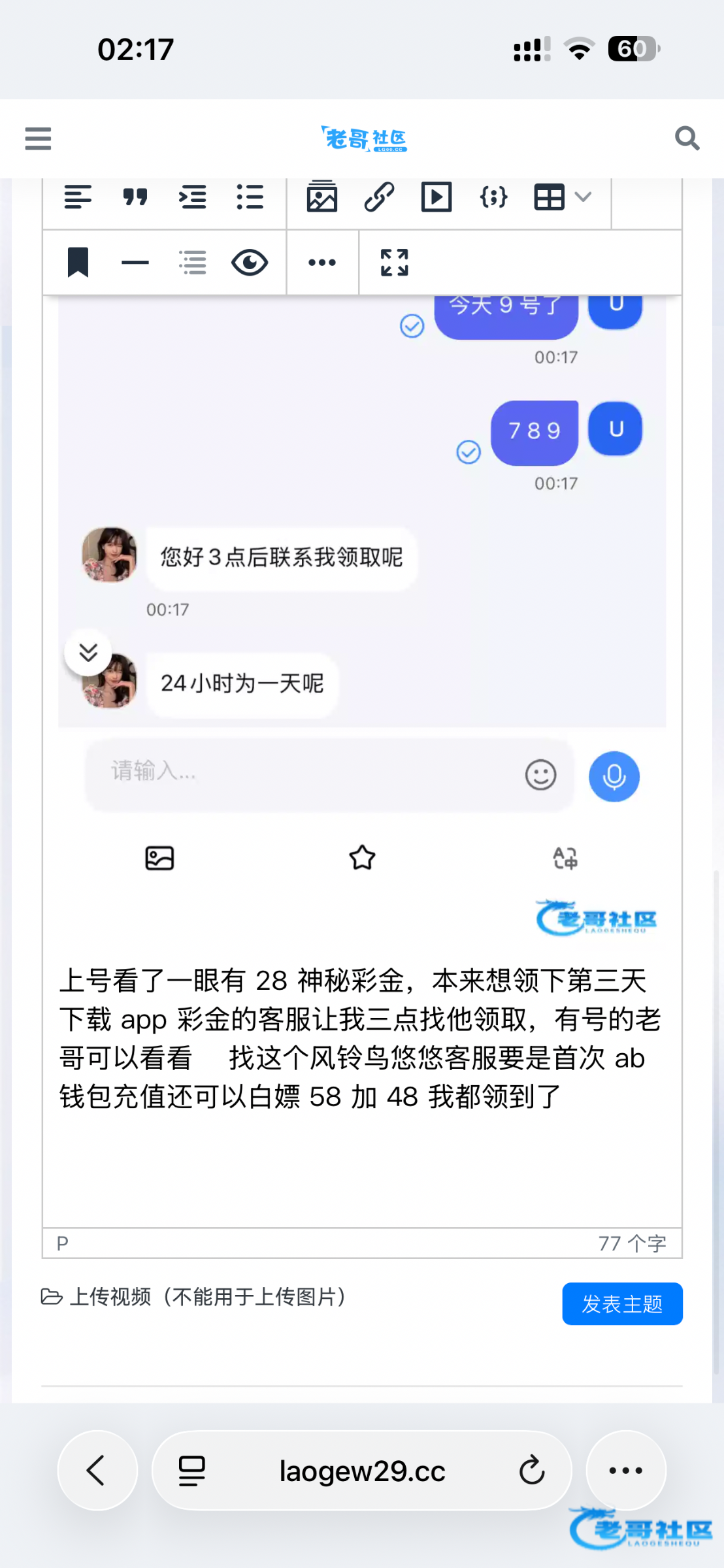 链接www.31.ee 上号看了一眼有28神秘彩金,本来想领下第三天下载 app彩金的客服让我三点找他领取,有号的老哥可以看看 找这个风铃鸟悠悠客服要是首次 ab钱包充值还可以白嫖58加 48 我都领到了 提现不黑出过 400 有号的老哥可以上去看看