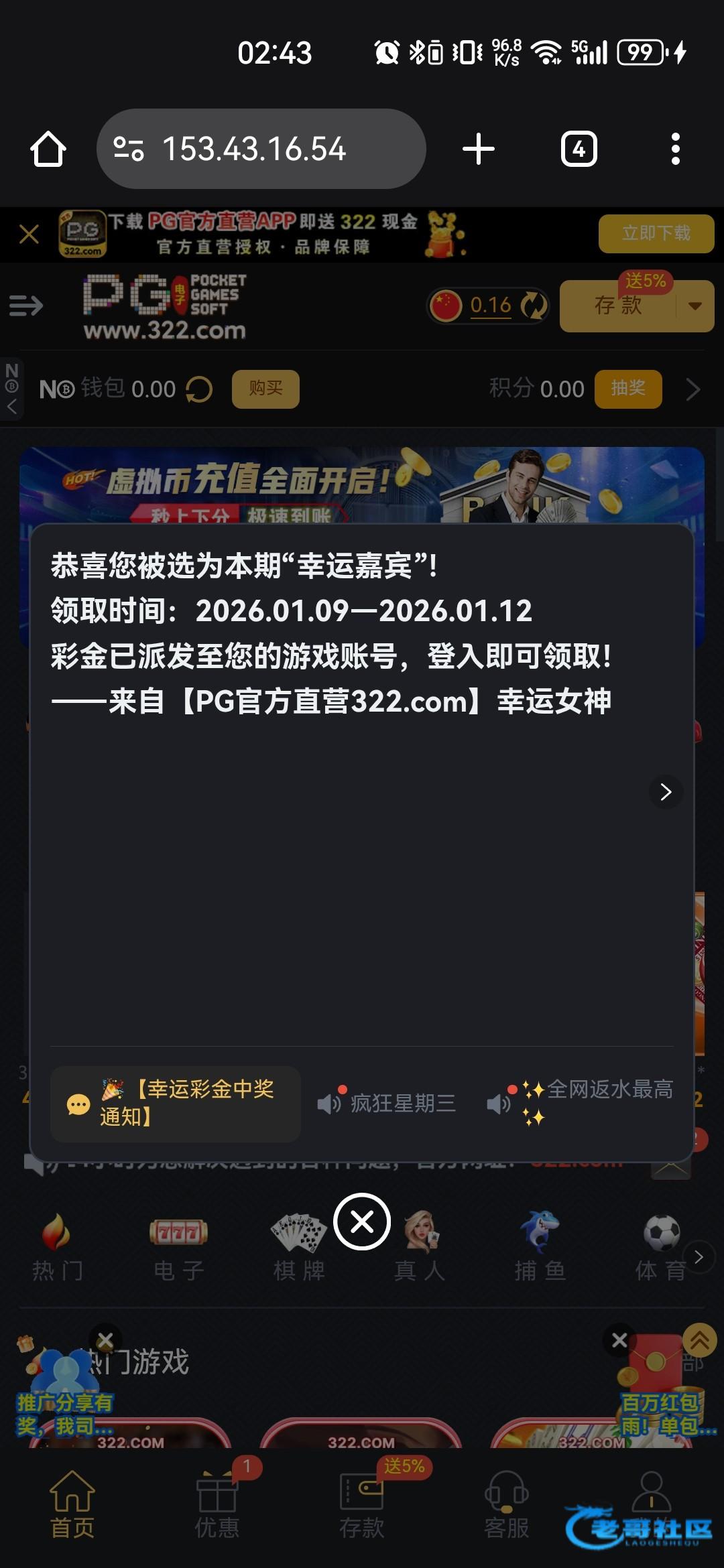 t4678220 ▶ laichenchen002 我是去年那个短信特邀,进去的。我反正提现没被黑过,只是喜欢棋牌后面输的多 17天前