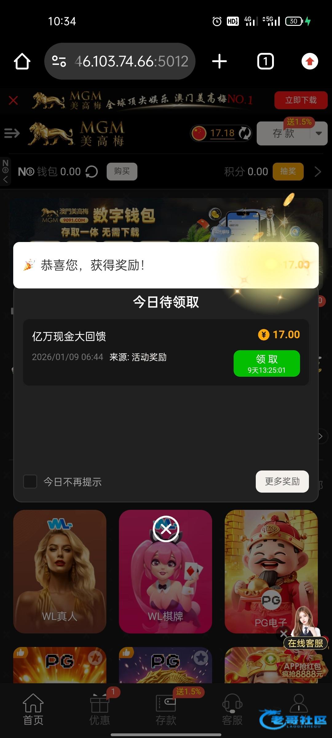 今天电话领回归彩金 妈的给2块钱