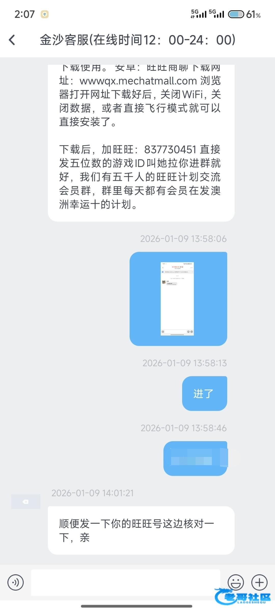 之前玩过,可以直接加旺旺号