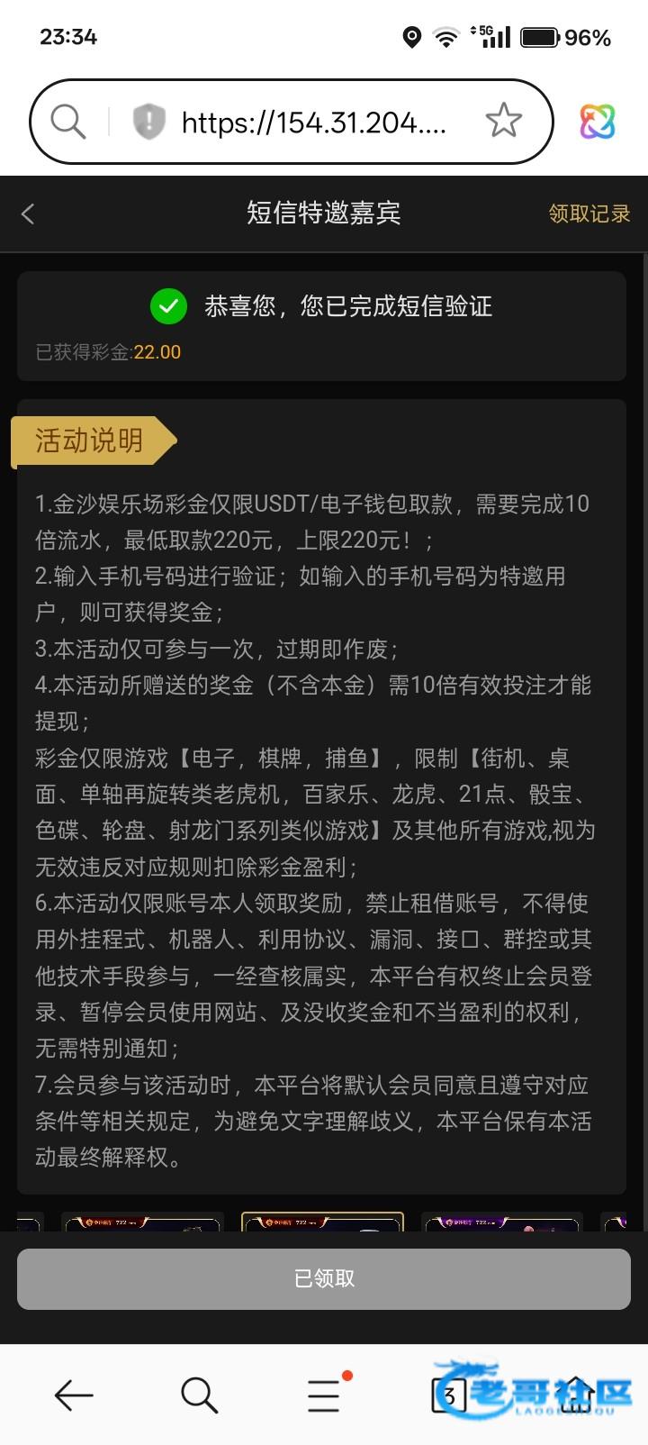 自助特邀22 刚刚发信息来 登上收个验证码就有了 还没打 出款未知 各位老哥白嫖即可链接http://121816.top