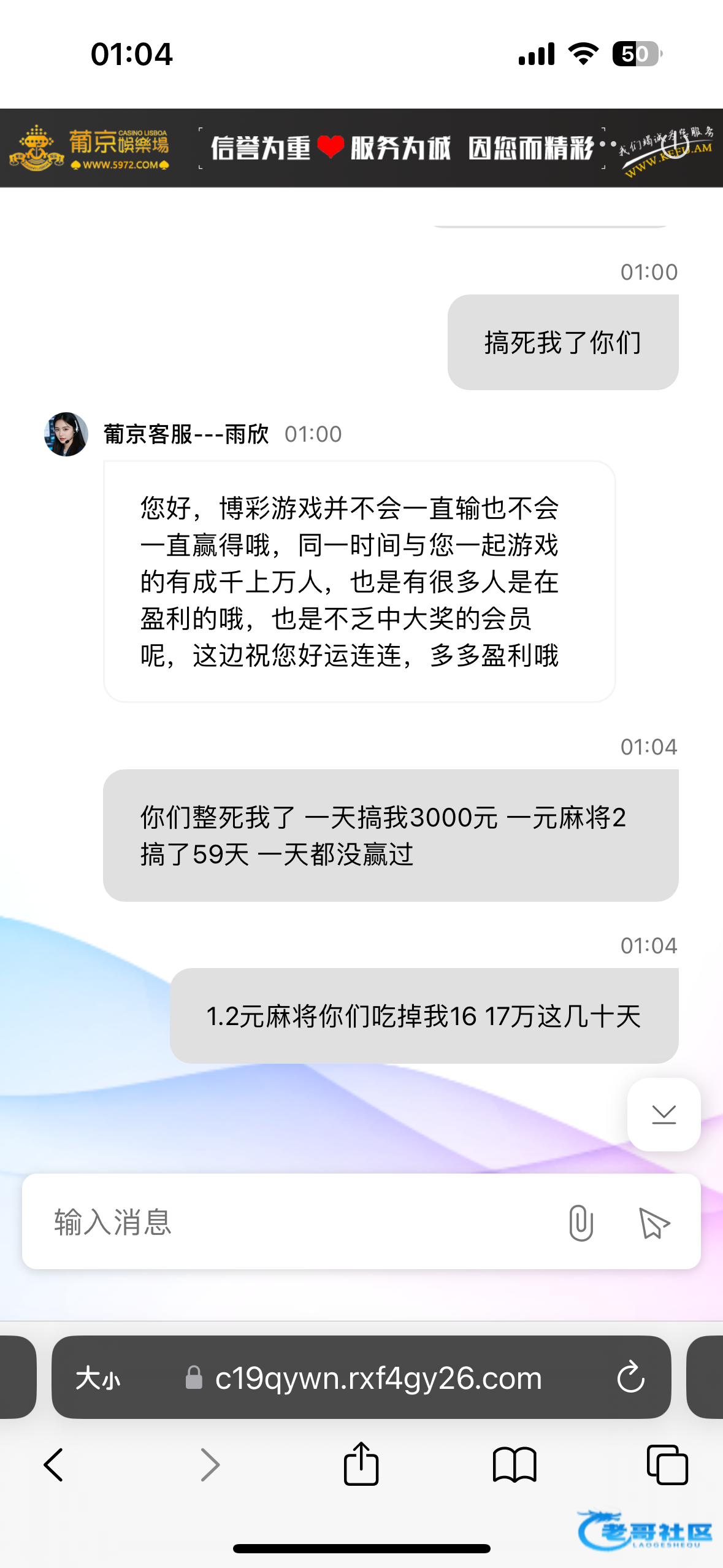 被这个台搞惨了 连续搞了59天负2000 3000的 1.2元麻将 15万了 今天玩3元又被搞一万 玩一元搞3000 玩3元就搞我一万 搞得不想活了