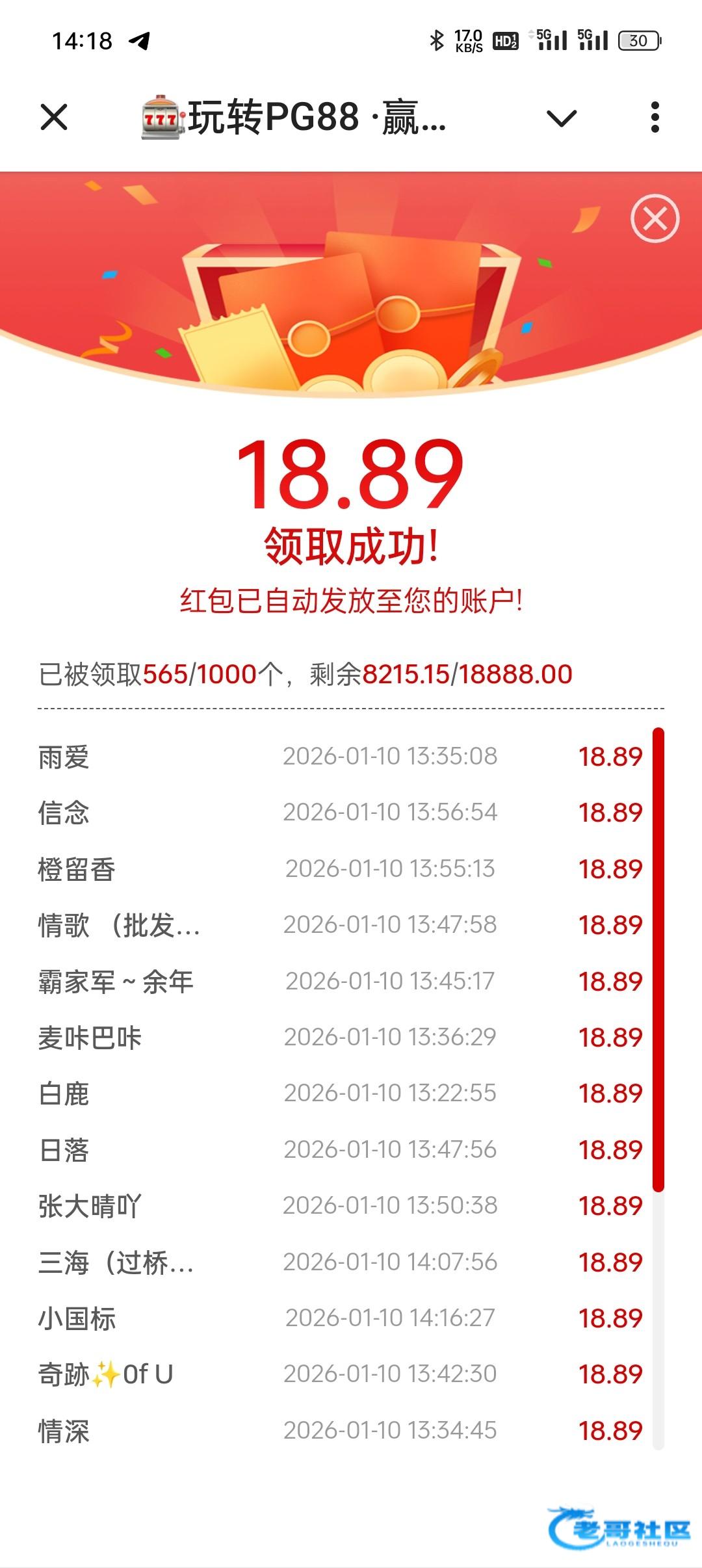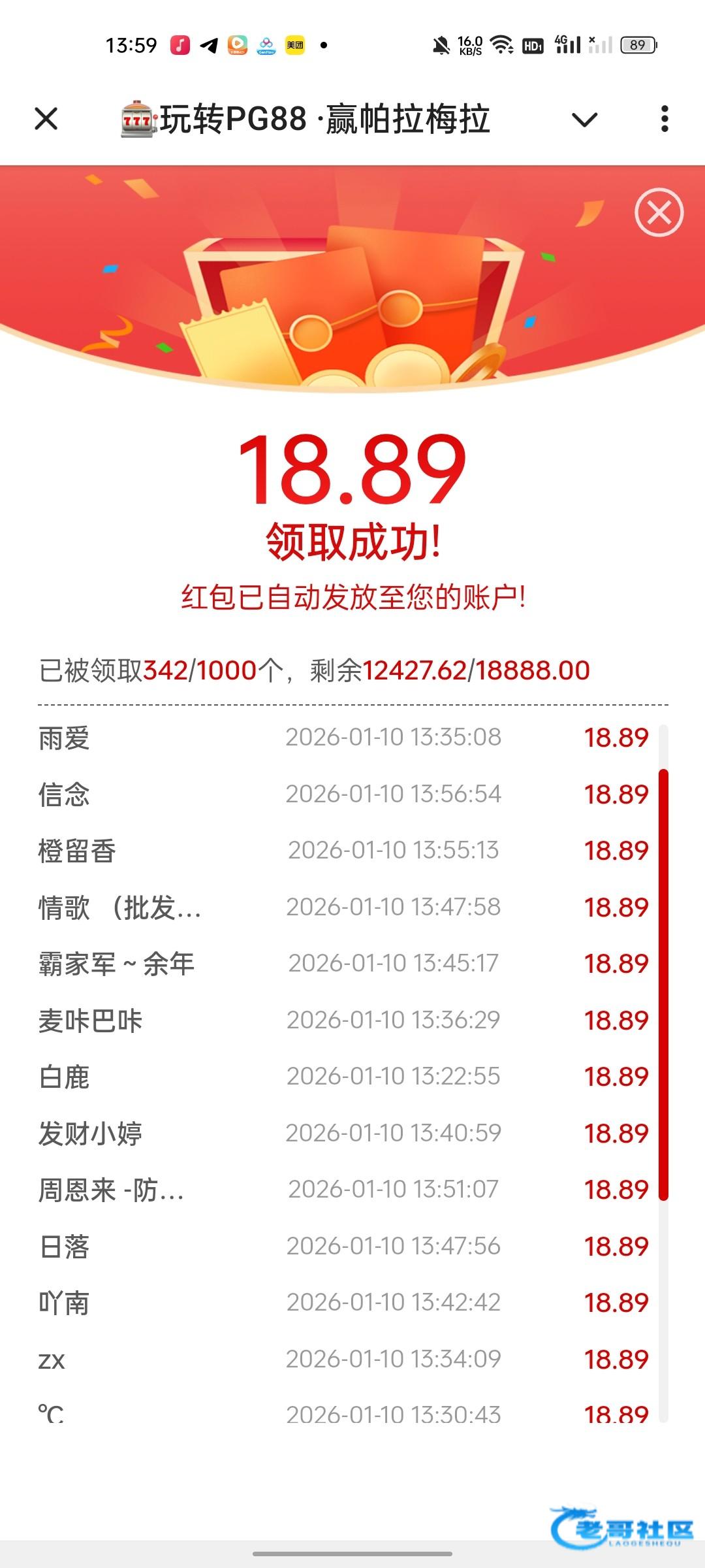 18.89红包还有六百包,快去 @pg88