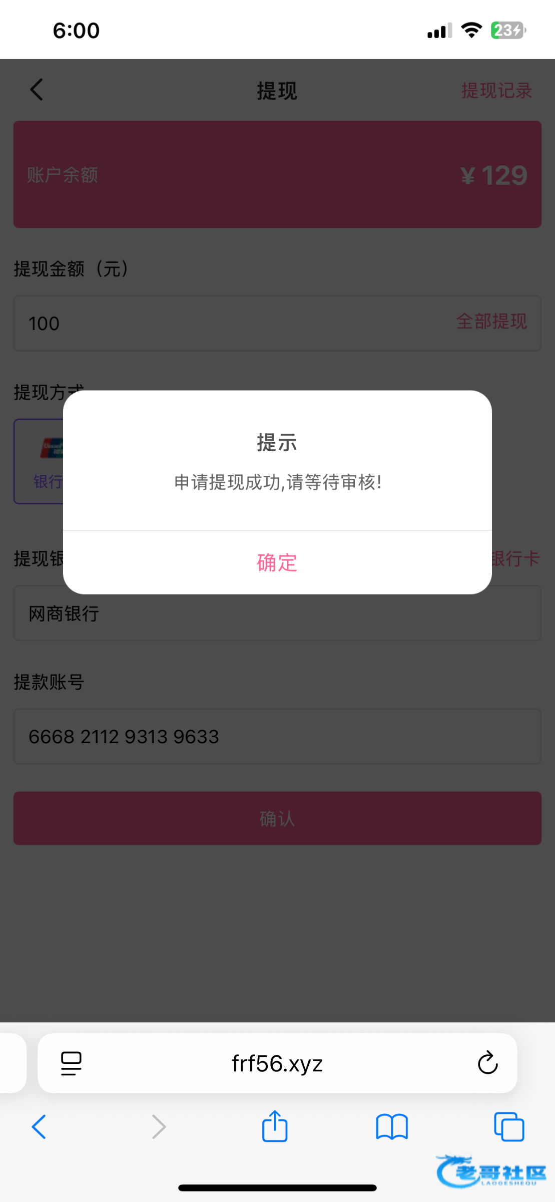 提现了100不知道能不能到