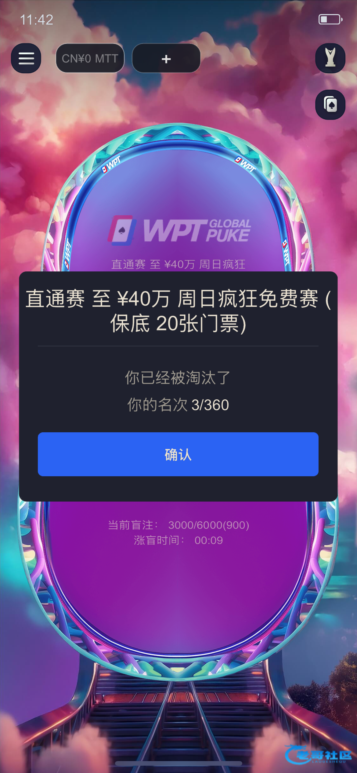 而且我还有17万多筹码,那把拿了一对Q赢的希望还很大的,直接就弹出这个了。