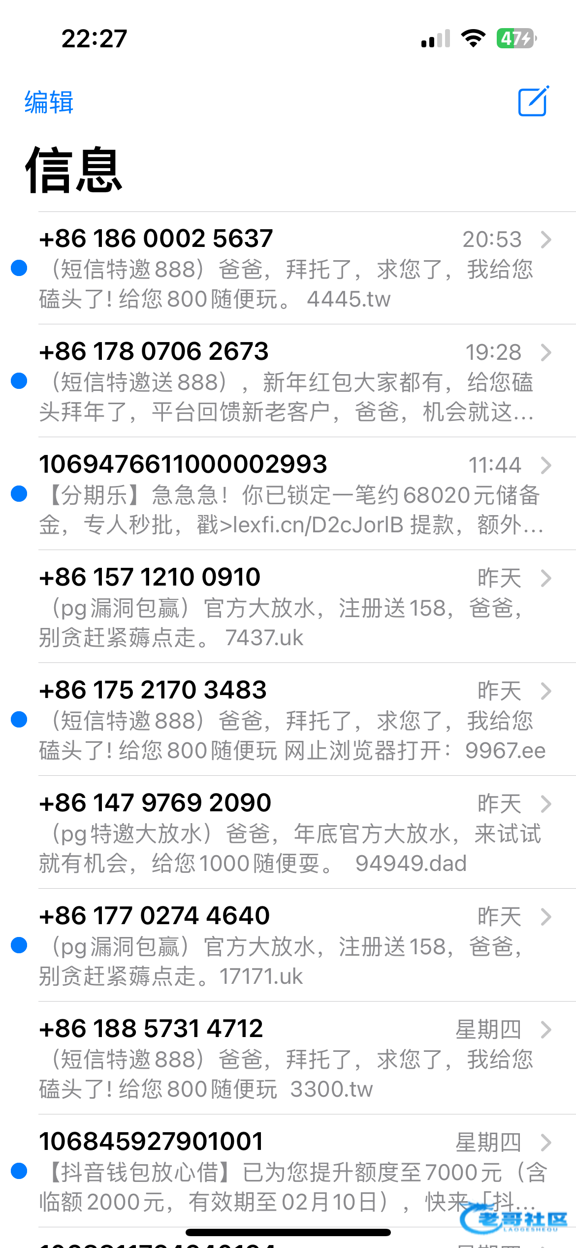 最近一堆狗庄短信轰炸叫爸爸