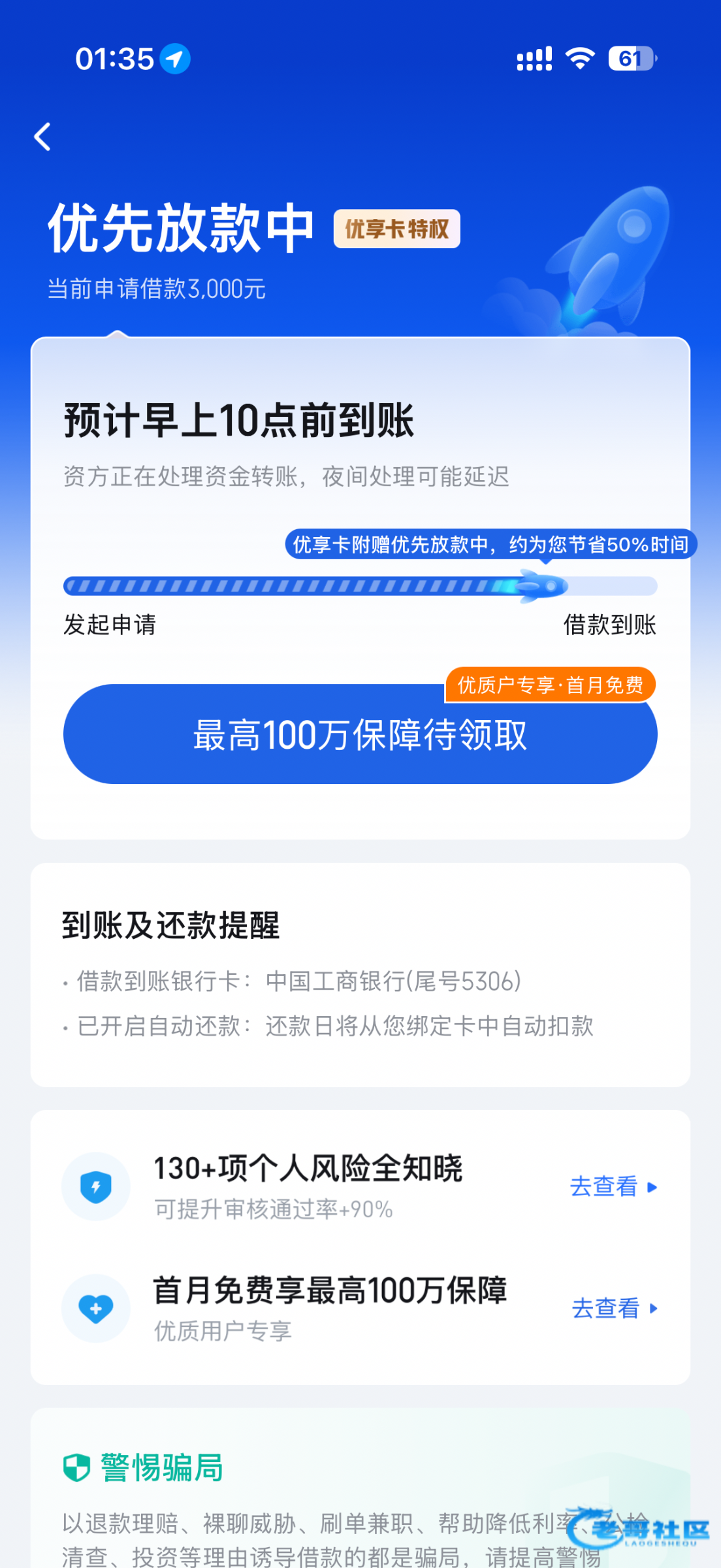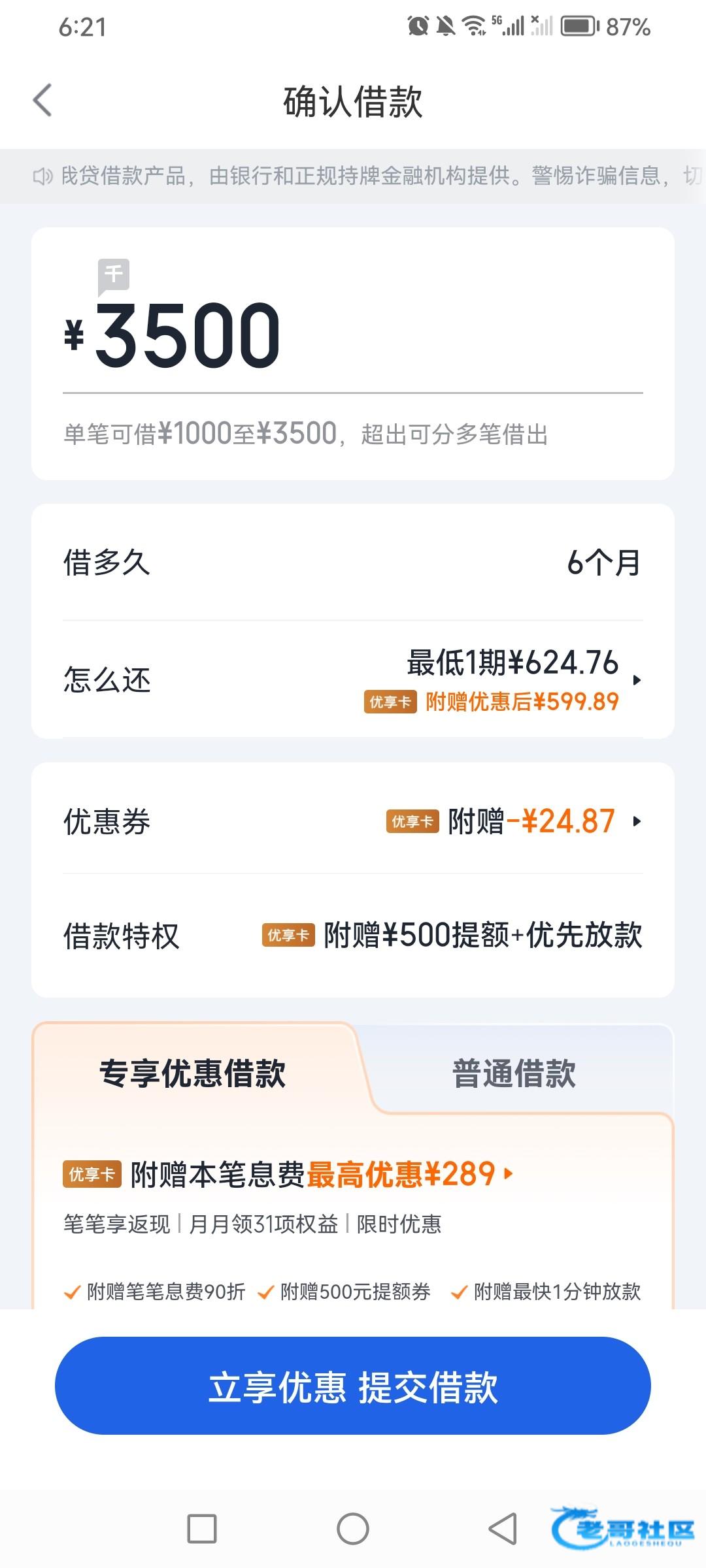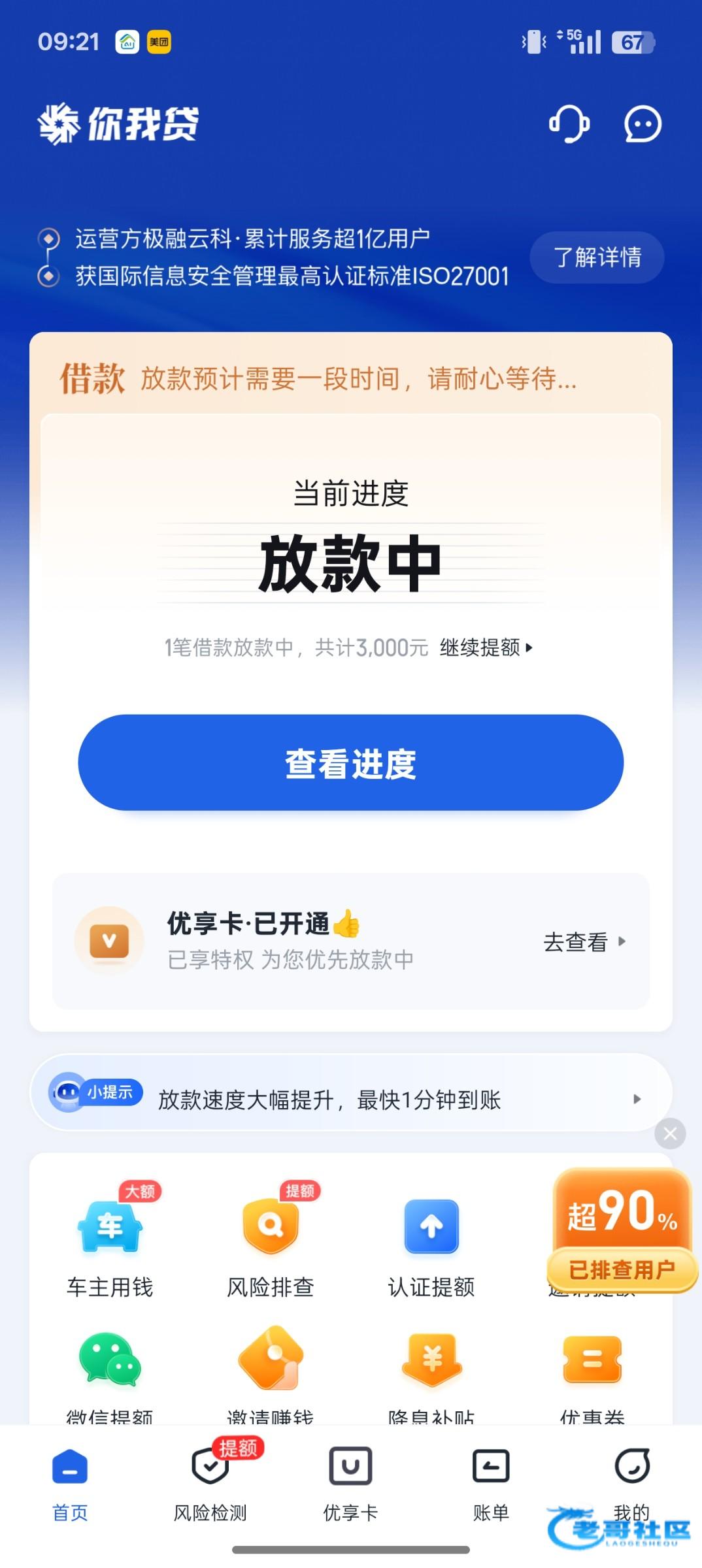 我钱都没到,我就打算试试2500额度然后什么点优享卡提500一共3000一直放款中,来个短信要我299,我操