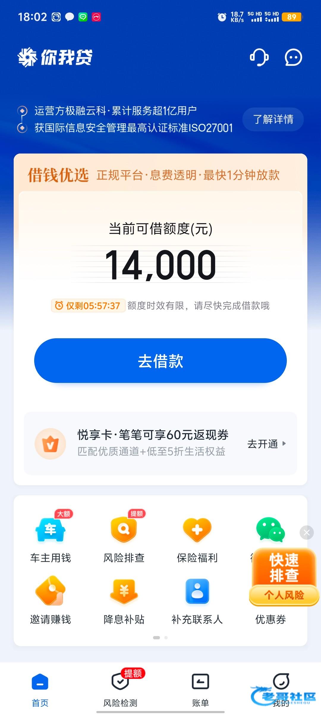 万年黑户,今天去你我贷看了下尽然给了三千额度下款了,我允许你没钱干狗庄
