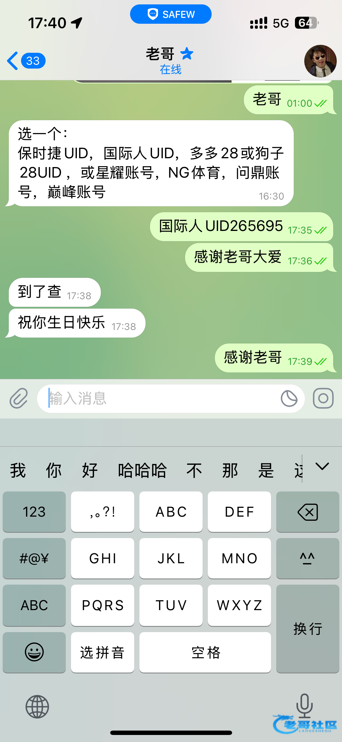 谢谢老哥的生日彩金