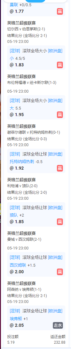 准备了500块钱买最后一轮英超,结果没忍住,最后也没打。真是草了他妈的