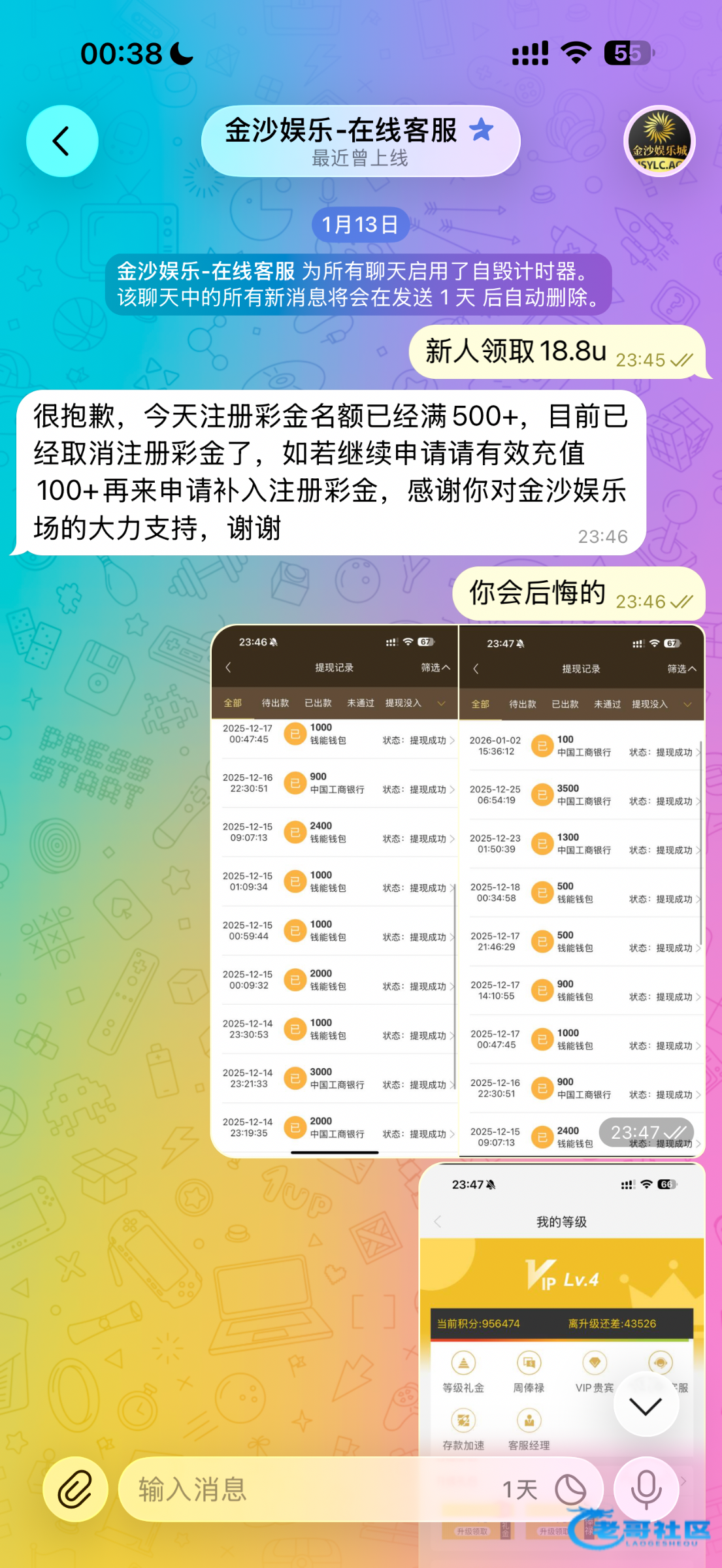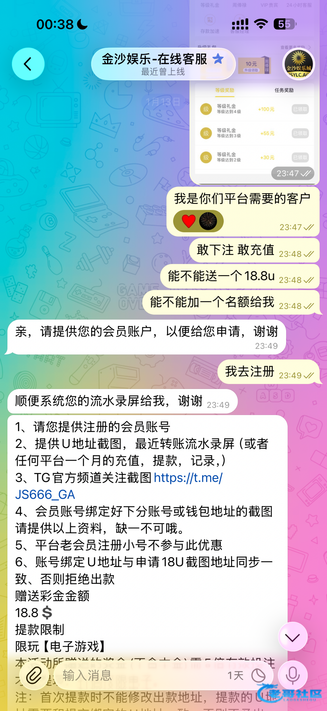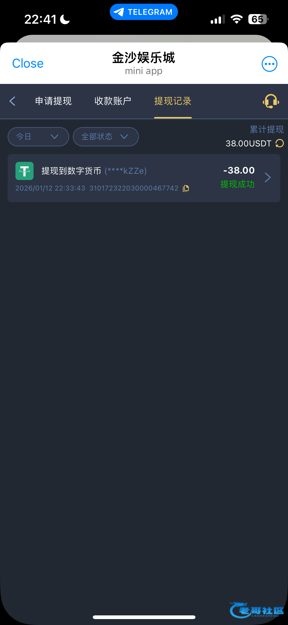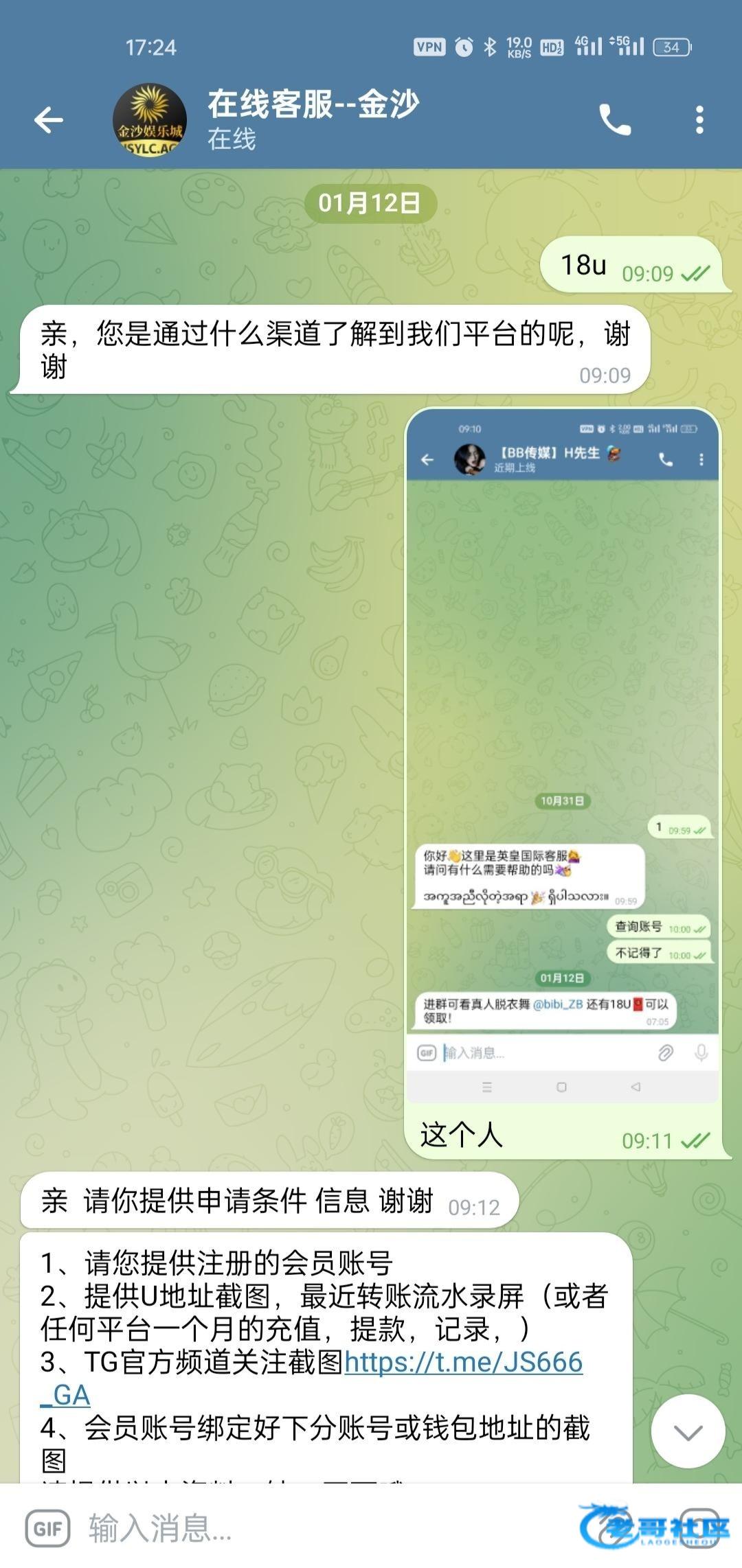 他会问你怎么来的,你截图上面这个群给他里面看到的自己圆。 我打了800u,最高只能提现38u网址https://t.me/bibi_ZB