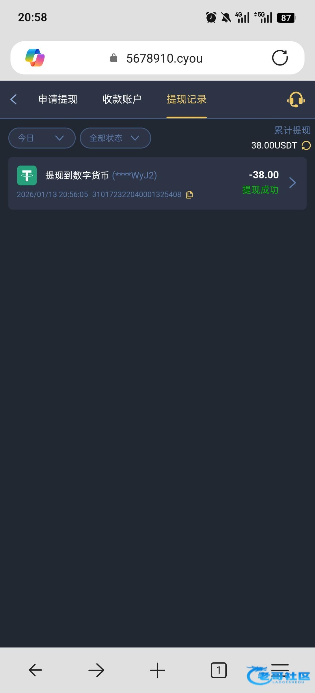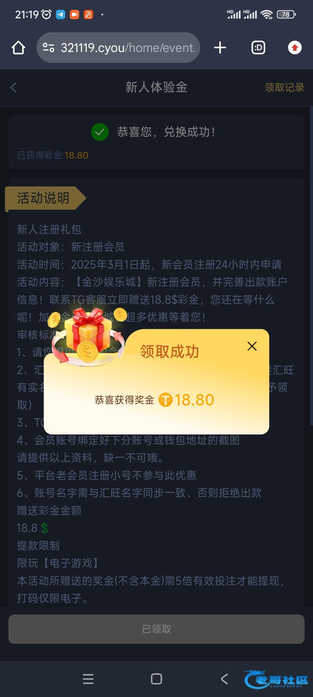 到账了有格局,用常用的账号注册显示注册过,应该是之前参与过,重新注册了个号,换了个地址给了个兑换码,然后填姓名显示同名只让领取一次,然后又注册了个号,重新绑定了地址一个,姓名随便绑定了一下,麻将1拉0.6进免费两次最高20倍左右,基本都是平拉给的分,流水打够,提20u到账