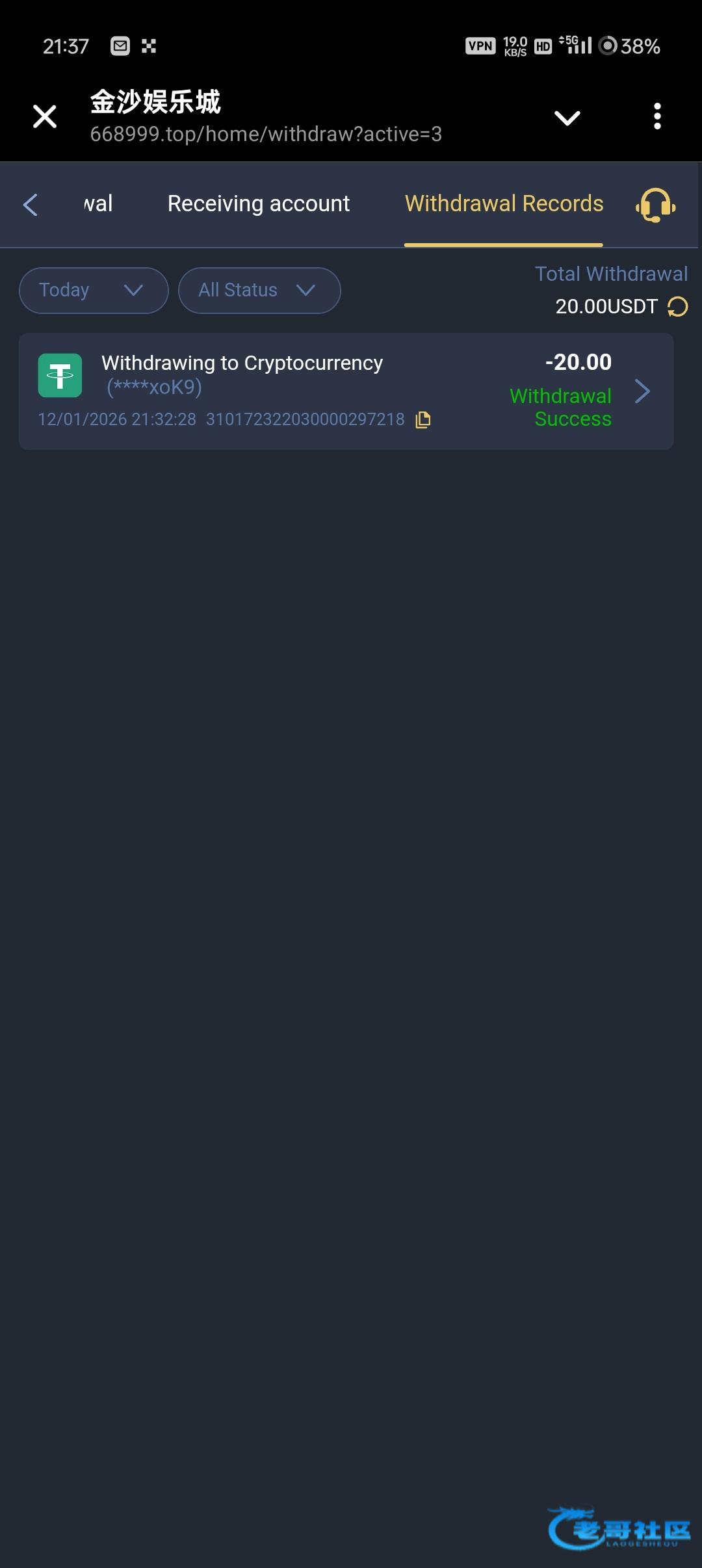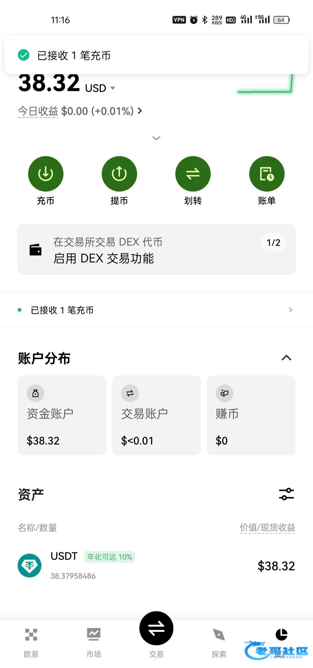 到账38u