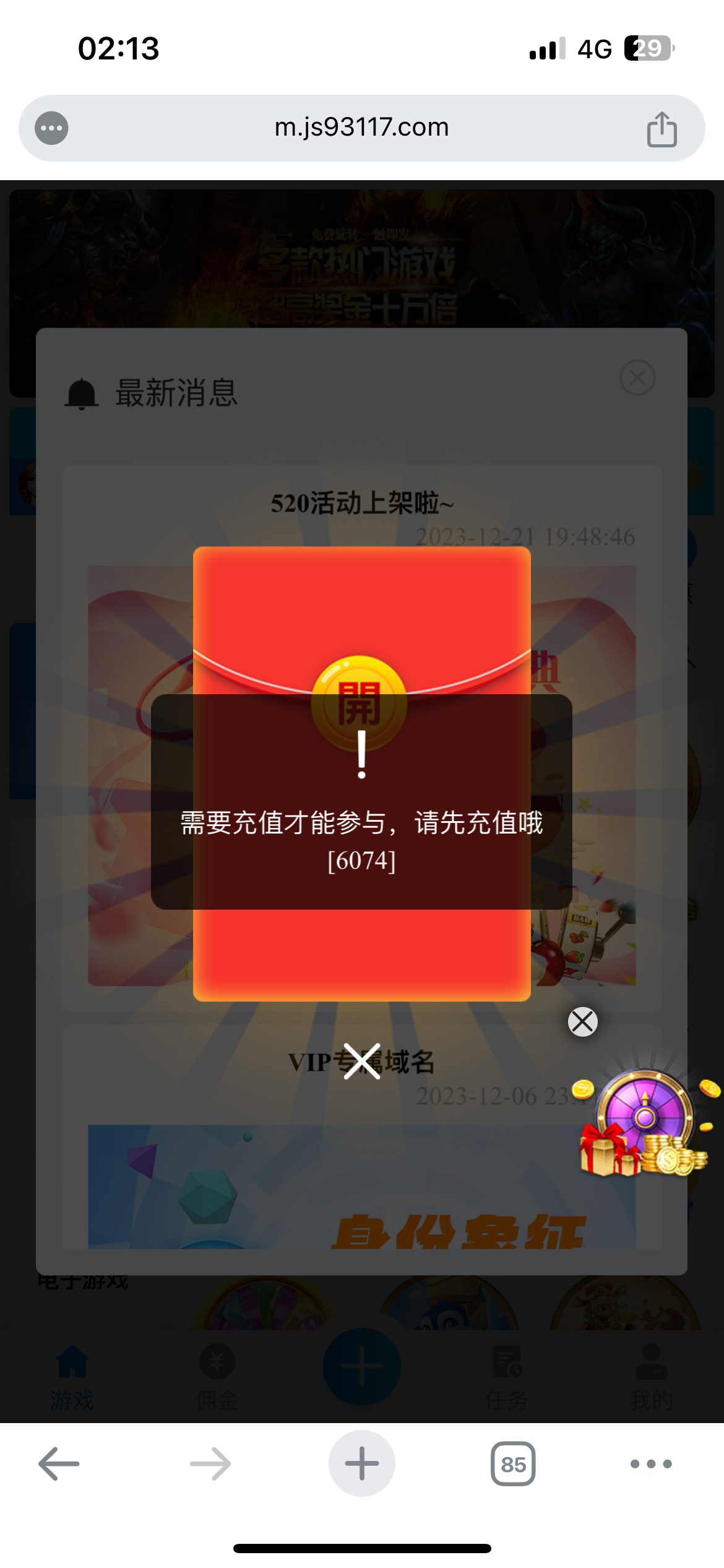 这个台陆陆续续玩了好几年,打码量要求不多,玩到v4了,提现确实快,没黑过,但是不建议玩,电子最高记录100提过1500多,充1000才打到1900上不去了,前几天充了几块,今天抢红包也就1块5左右