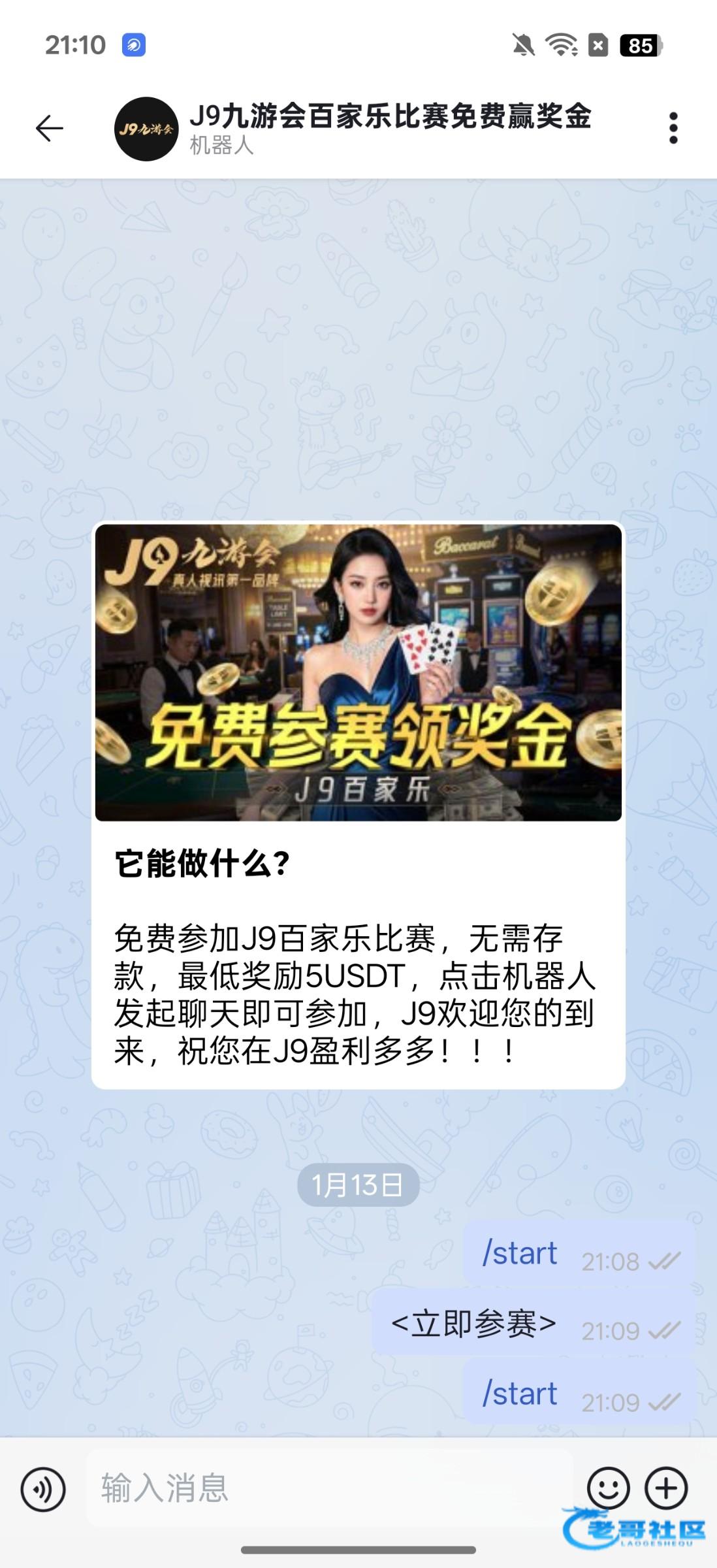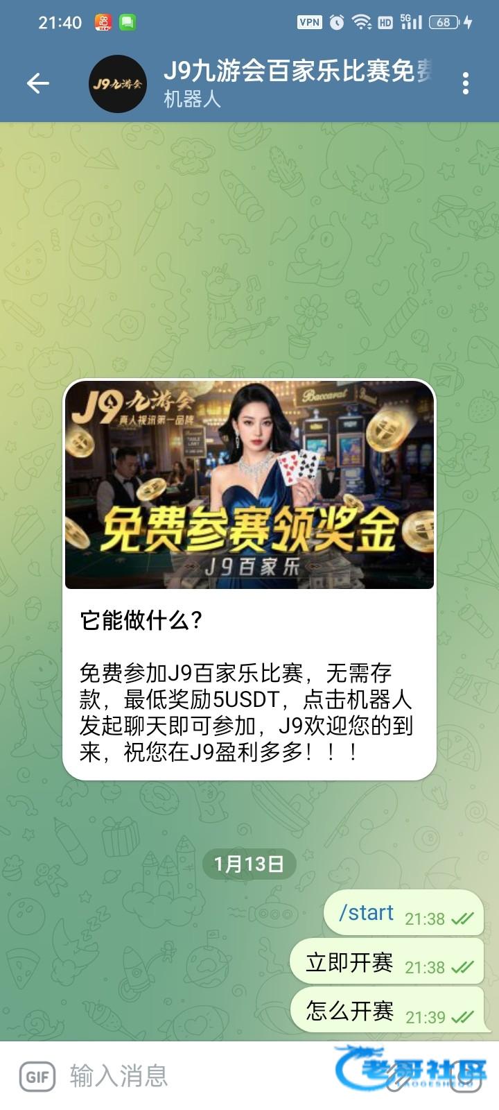 飞机机器人@J9TGbot发起聊天,立即开赛,然后点击任务签到获取门票即可参赛,10把比赛赢五把且盈利五万即可奖励5u,多号多撸,没有飞机的撸不了