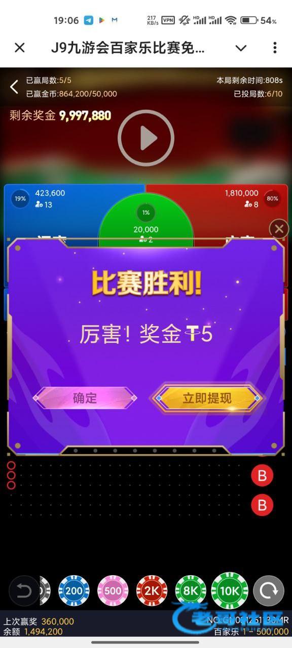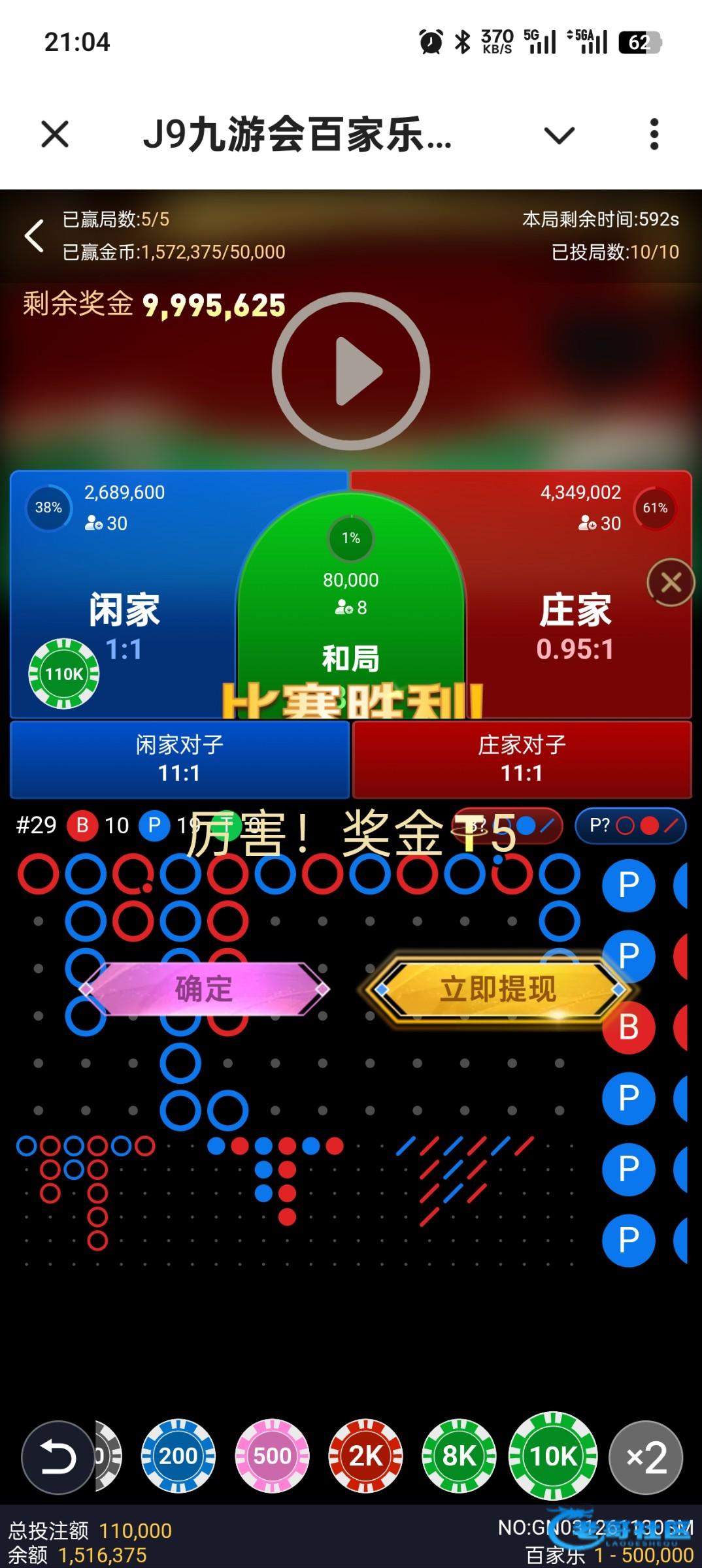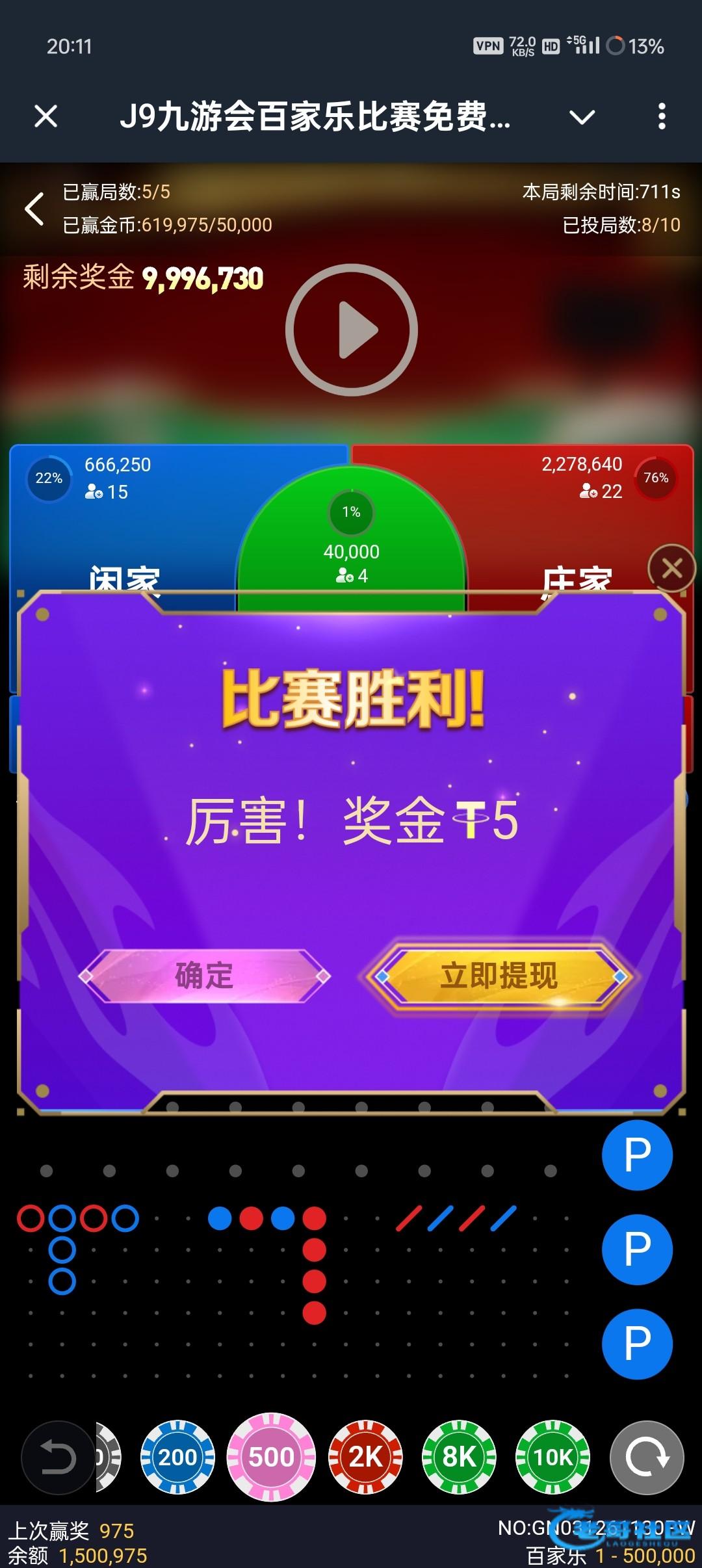 第一次去玩就成功5u,第一把直接下了500k中了然后后面中奖次数也够了
